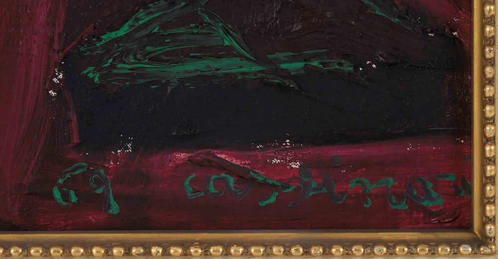 Bruno Cassinari (1912-1992) Senza titolo, 1969 olio su tela, cm 30x40 firmato e datato in basso a destra Opera registrata presso l’Archivio Bruno Cassinari, Milano, in data 29 ottobre 2013, con il n. 3329/C844 in buono stato conservativo Bruno Cassinari (1912-1992), Untitled, 1969 oil on canvas, cm 30x40 signed and dated lower right This work is registered at the Bruno Cassinari Archive, Milan, with the number 3329/C844