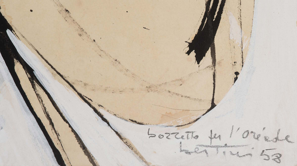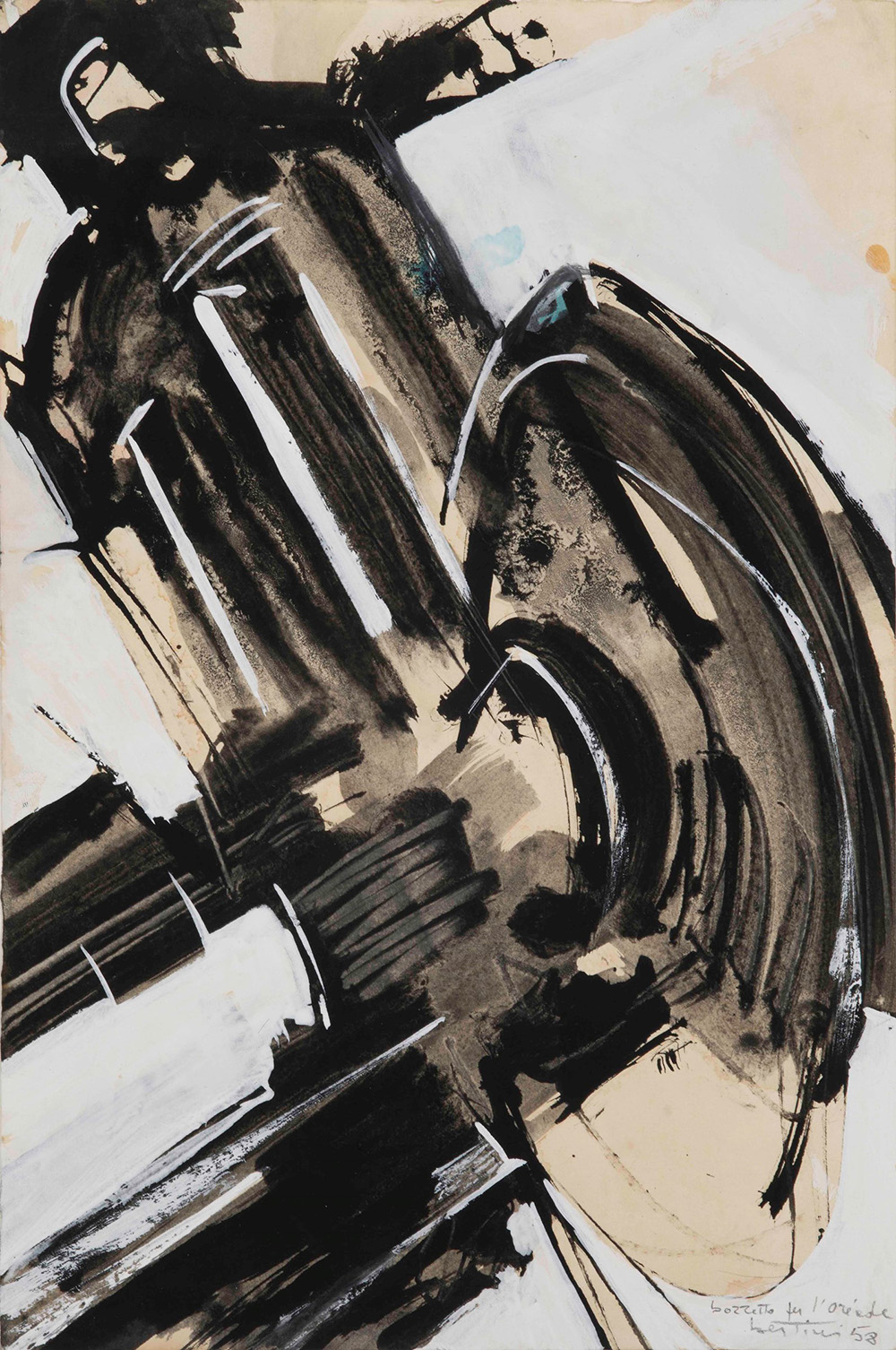 Gianni Bertini (1922-2010) Bozzetto per l'Oriente, 1958 tecnica mista su carta, cm 35x23,5 firmato, intitolato e datato in basso a destra Gianni Bertini (1922-2010), Scketch for the Orient, 1958 mixed media on paper, 35x23,5 signed, titled and dated lower right