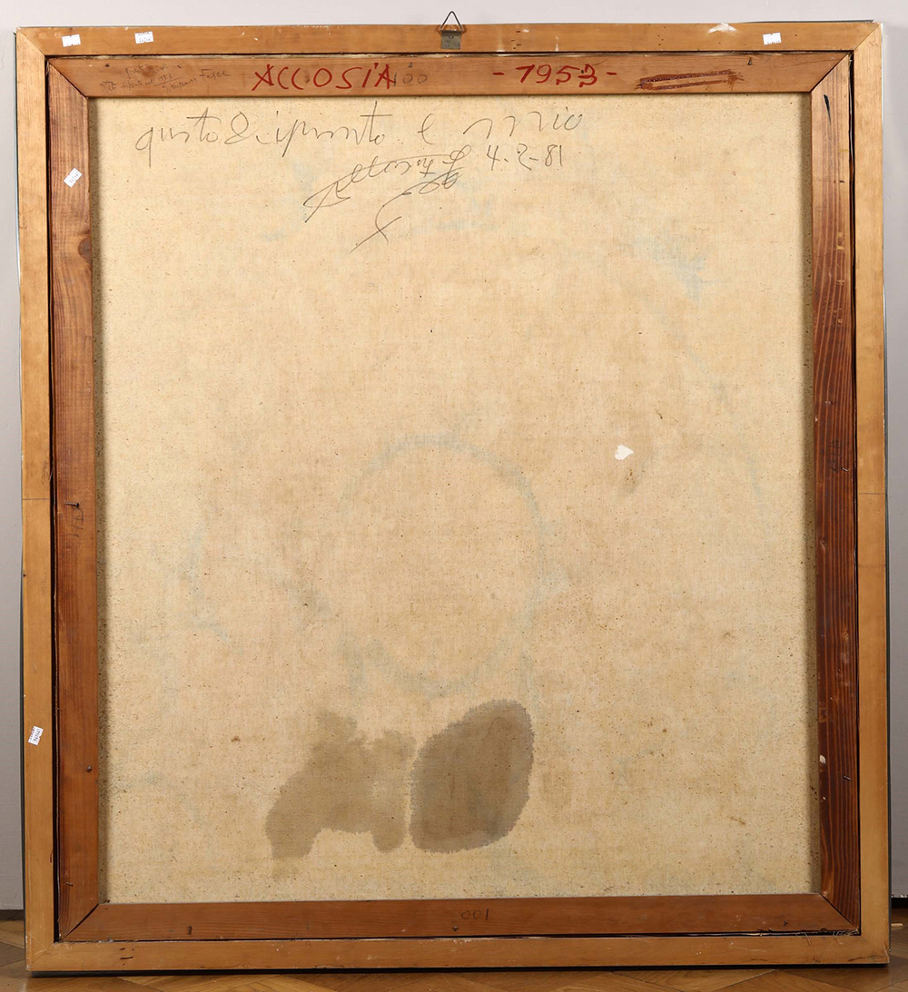 Giuseppe Allosia (1910-1983) Senza titolo, 1953 acrilico su tela, cm 110x100 datato al retro l'opera presenta craquelures e cadute di colore Giuseppe Allosia (1910-1983), Untitled, 1953 acrylic on canvas, cm 110x100 dated on the back