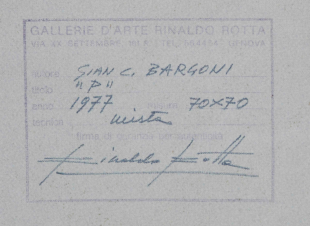 Giancarlo Bargoni (1936) P, 1977 tecnica mista su tela, cm 70x70 firmato e...