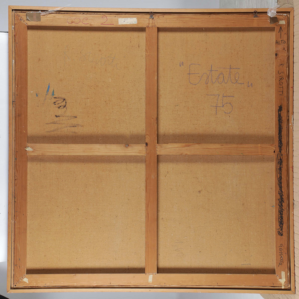 Raimondo Sirotti (1934-2017) Estate, 1975 olio su tela, cm 145x145 intitolato e datato al retro Bibliografia: Raimondo Sirotti Mostra Antologica 1959-1995 Museo di Villa CroceMarzo Maggio 1996 Electa, p. 52 ill. Raimondo Sirotti Cinquant'anni di pittura 1955-2005 Genova Palazzo Ducale Maggio-Giugno 2005 Linea d'Ombra Libri, illustrato pag 63 Da Guttuso a Vedova a Schifano il filo della pittura in Italia nel secondo Novecento Treviso 2016-2017 a Cura di Marco Goldin, illustrato pag 91 Raimondo Sirotti (1934-2017), Estate, 1975 oil on canvas, cm 145x145 titled and dated on the back