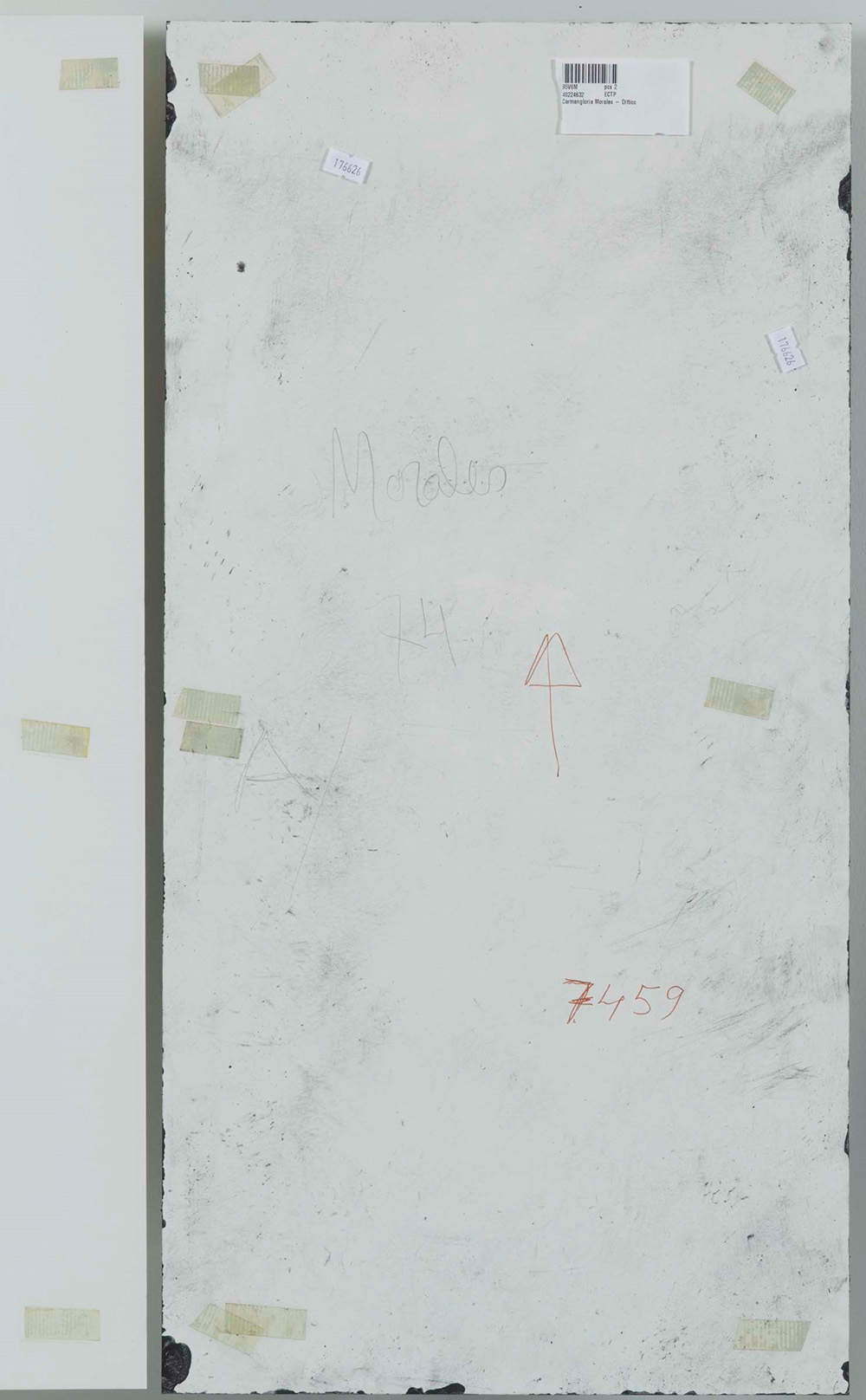 Carmen Gloria Morales (1947) Senza titolo, 1974 dittico composto da due fogli, graffite su cartoncino, cm 70x35 cad. l'opera presenta segni di scotch con il quale è stato applicato sul vetro Carmen Gloria Morales (1947), Untitled, 1974 dipthyc composed by two papers, graphite on cardboard, cm 70x35 each