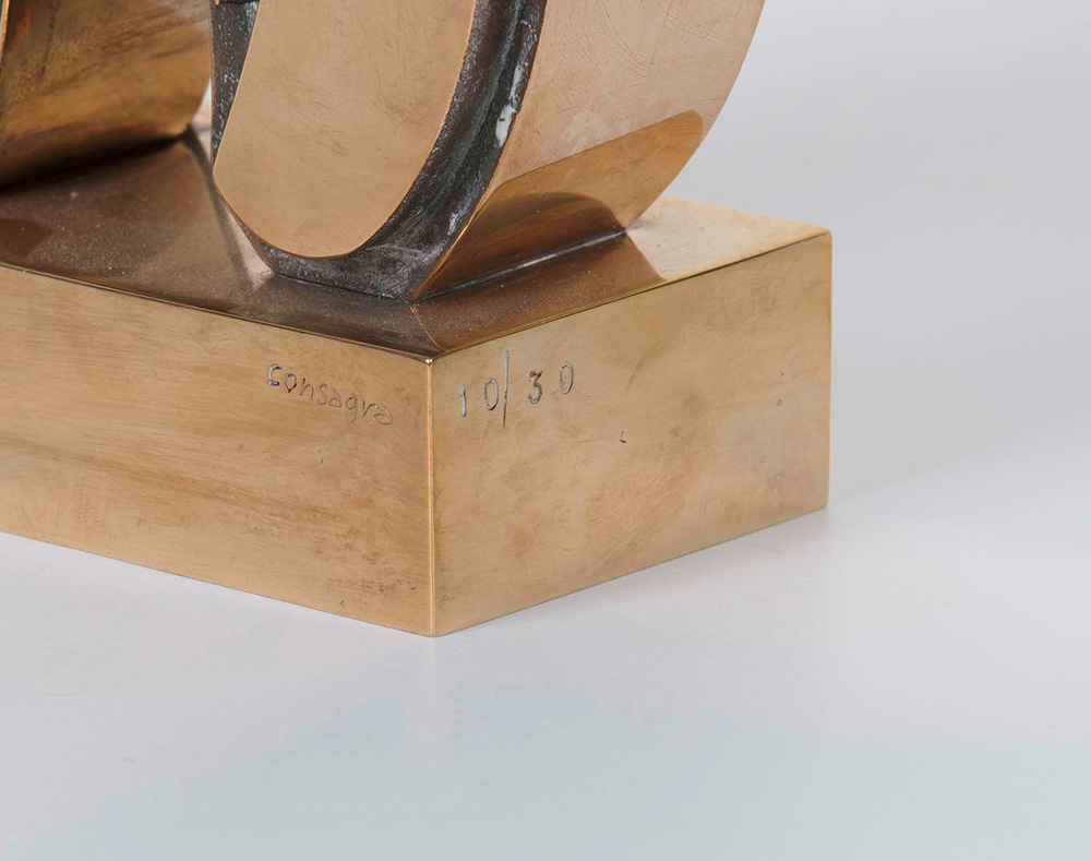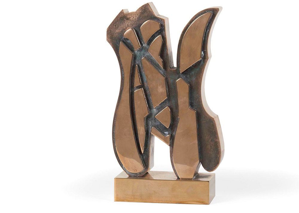 Pietro Consagra (1920-2005) Bifrontale 1 alta fusione a cera persa, cm 14,5x6,5x26 firmata sulla base es. 10/30 Autentica su fotografia dell'artista Pietro Consagra (1920-2005), Bifrontale 1 alta lost wax casting, cm 14,5x6,5x26 signed on the base es. 10/30 Photo certificate signed by the artist
