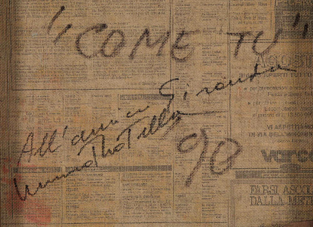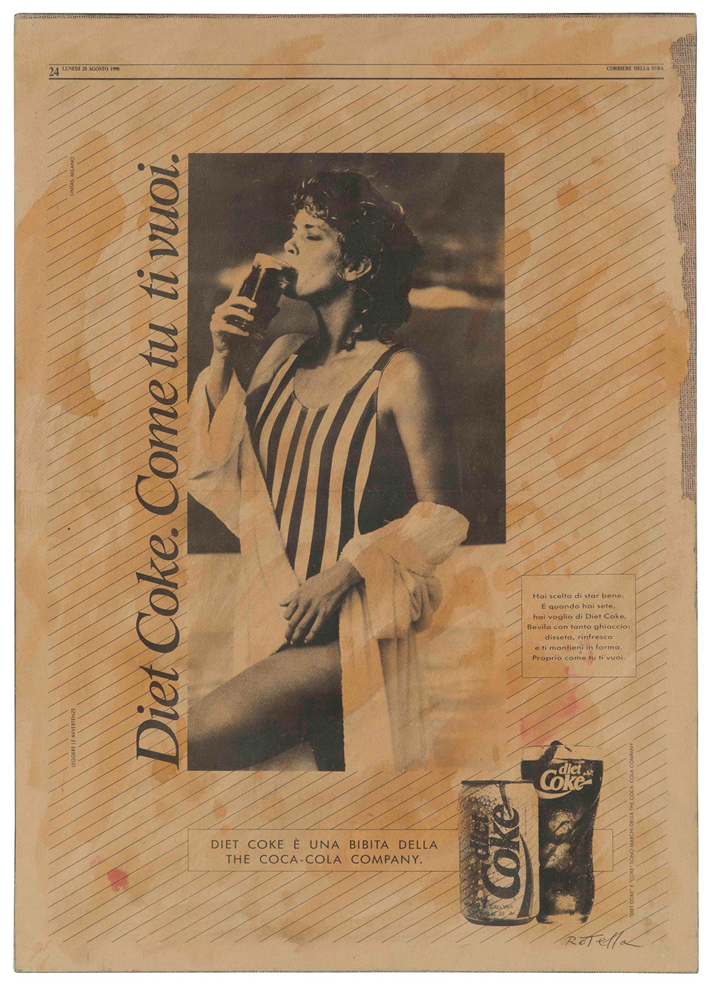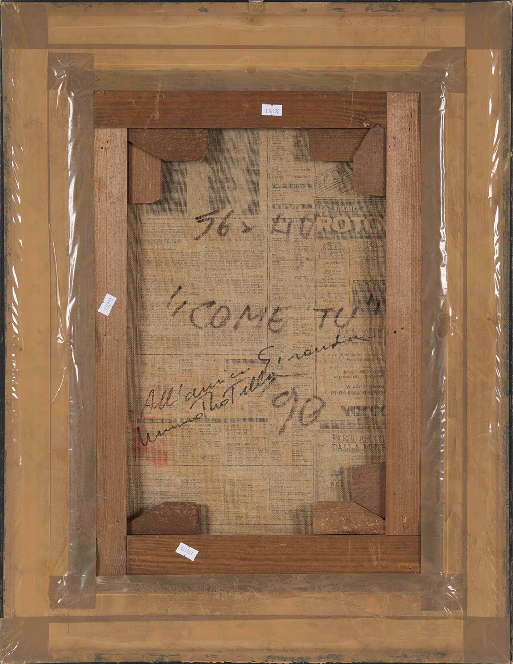 Mimmo Rotella (1918-2006) Come tu, 1990 frottage su carta intelata, cm 56x40 firmato in basso a destra firmato, intitolato e datato al retro Autentica su fotografia dell’artista l'opera è in buono stato conservativo Mimmo Rotella (1918-2006), Come tu, 1990 frottage on paper laid to canvas, cm 56x40 signed lower right signed, titled and dated on the back Photo certificate signed by the artist
