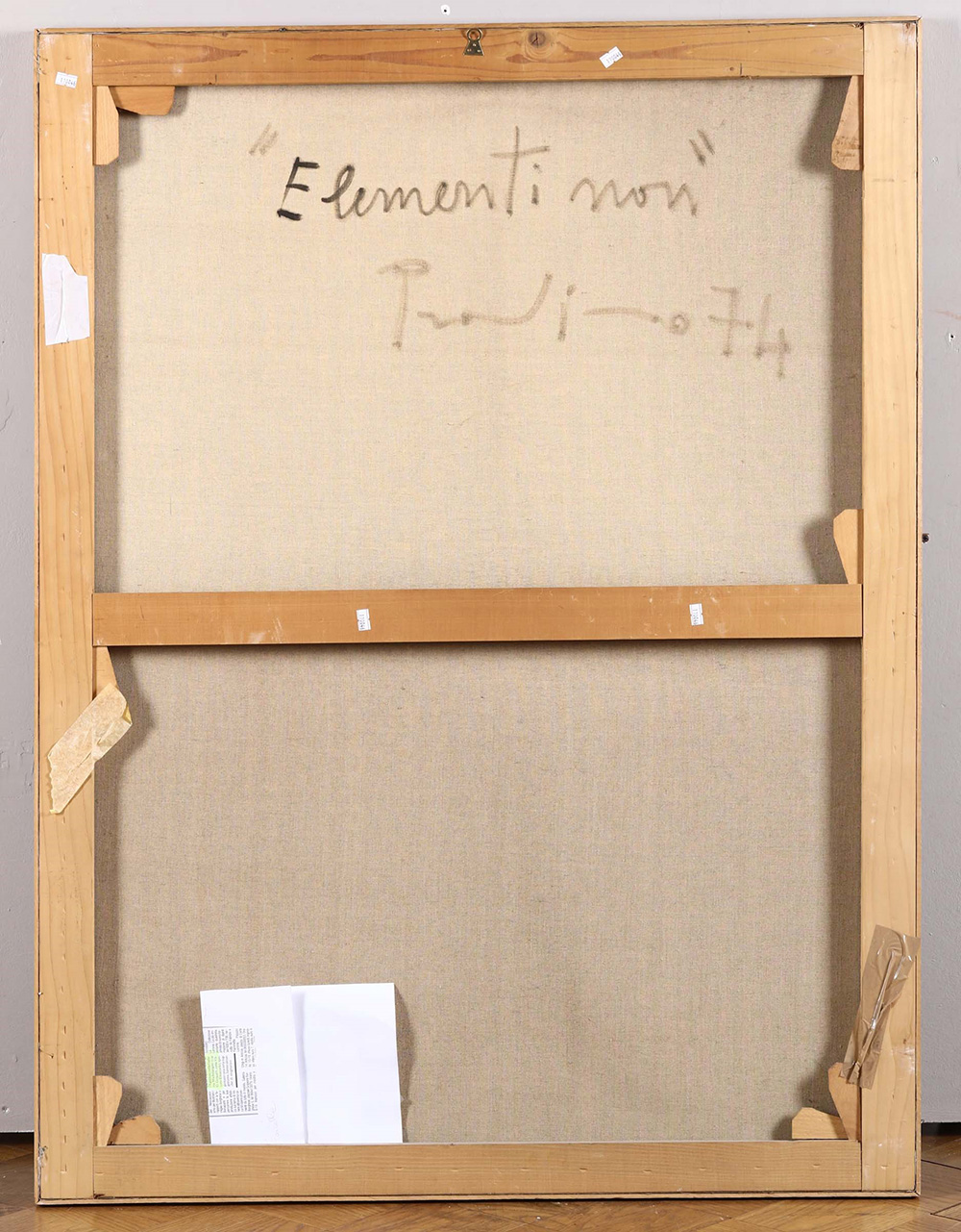 Salvatore Provino (1943) Elementi non, 1974 olio su tela, cm 121x91 firmato e datato in basso a destra firmato, intitolato e datato al retro Provenienza: Galleria Ca d’Oro, Roma, ivi acquistato dall’attuale proprietario Salvatore Provino (1943), Elementi non, 1974 oil on canvas, cm 121x91 signed and dated lower right signed, titled and dated on the back