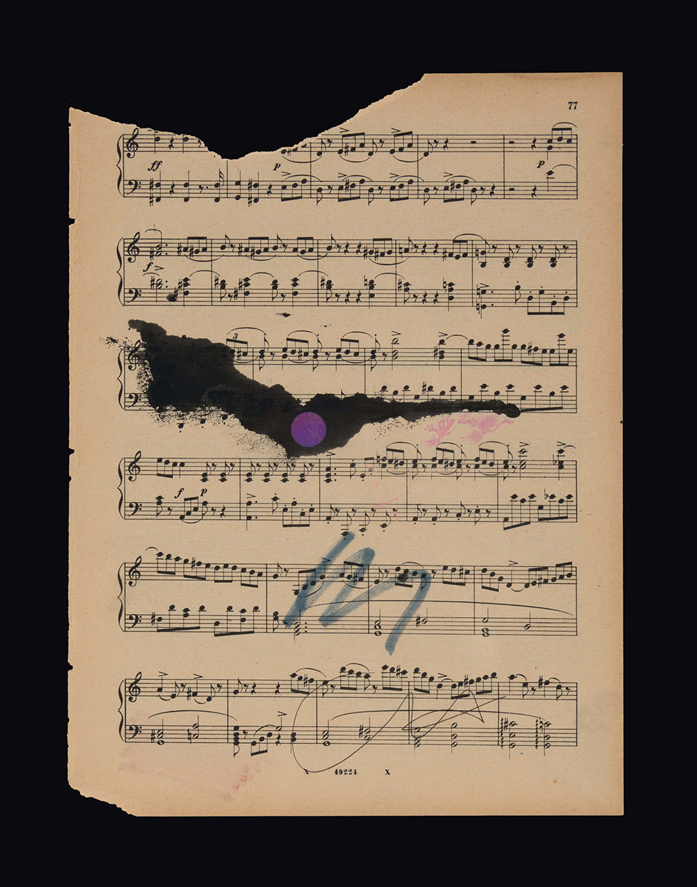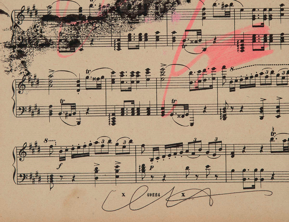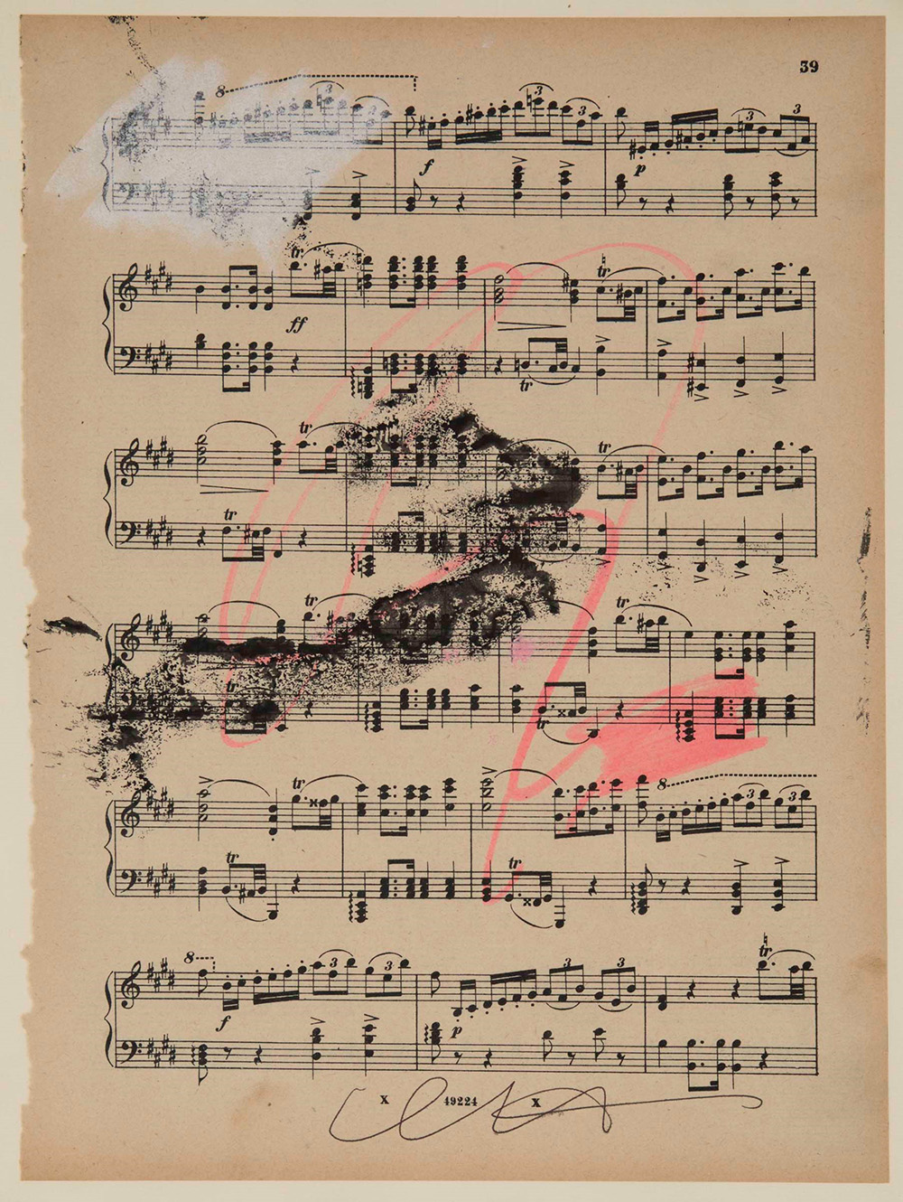 Giuseppe Chiari (1926-2007) Lotto di tre spartiti tempera su carta da musica, cm 30,5x23 cad. firmati in basso a destra Giuseppe Chiari (1926-2007), Lotto di tre spartiti tempera on music paper, cm 30,5x23 each signed lower right