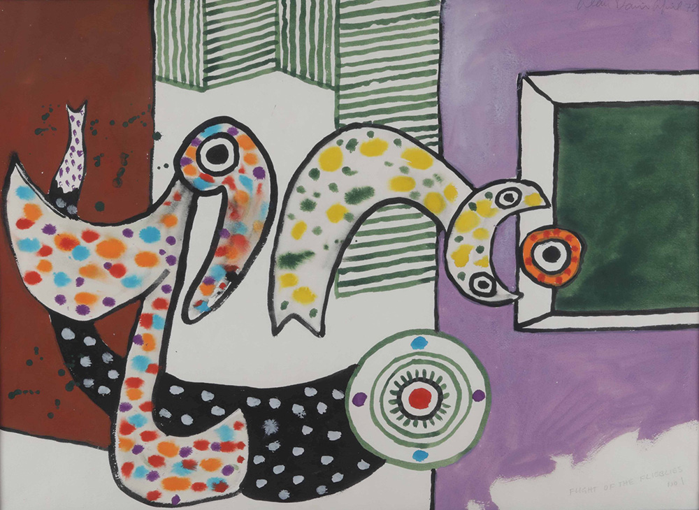 Alan Davie (1920-2014) Flight on the Flieblies n.1, 1972 tempera su carta, cm 55x75 firmato e datato in alto a destra, intitolato in basso a destra in buono stato conservativo Alan Davie (1920-2014), Flight on the Flieblies n.1, 1972 tempera on paper, cm 55x75 signed and dated upper right, titled lower right