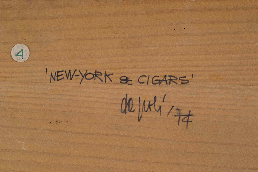 Fabio De Poli (1947) New York & Cigars, 1974 foto su legno, cm 50x50...
