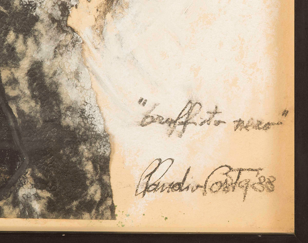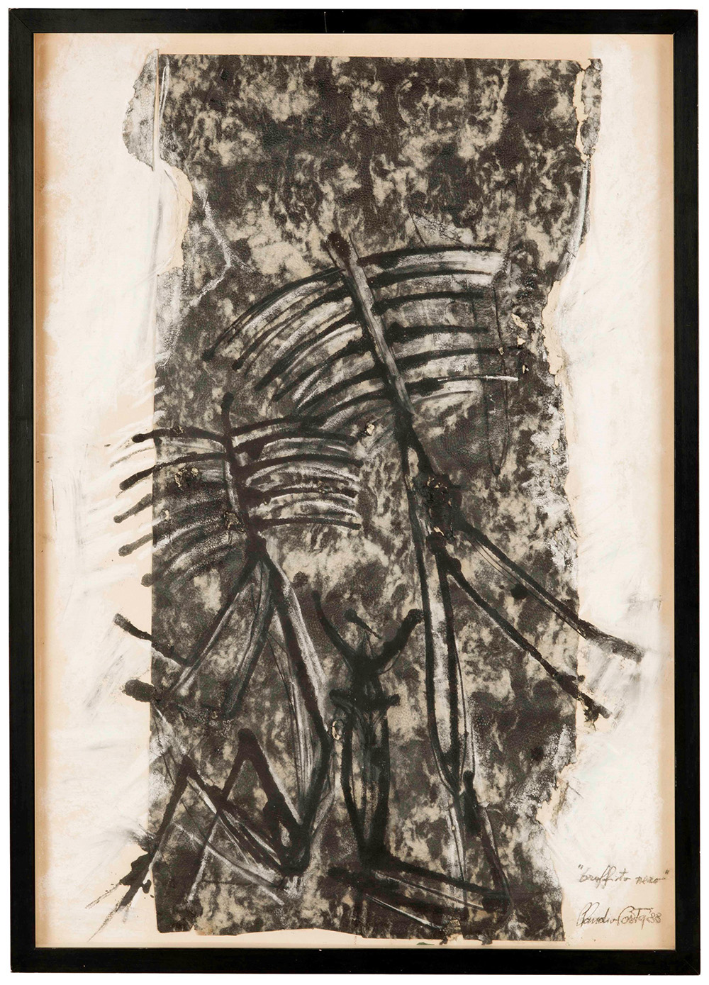 Claudio Costa (1942-1995) Graffito nero, 1988 tecnica mista e collage su cartoncino, cm 72x50 firmato, intitolato e datato in basso a destra l’opera si presenta in buono stato conservativo Claudio Costa (1942-1995), Graffito nero, 1988 mixed media and collage on cardboard, cm 72x50 signed, titled and dated lower right