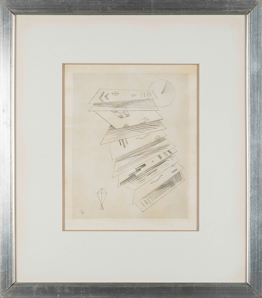 Vasilij Kandinskij (1866-1944) Zweite Radierung Fur Editions Cahiers D'Art, 1932 litografia su carta, cm 33,5x27 firmata in basso a destra datata e siglata in basso a sinistra l'opera presenta ingiallimento della carta e alcune tracce di foxing Vasilij Kandinskij (1866-1944), Zweite Radierung Fur Editions Cahiers D'Art, 1932 litography on paper, cm 33,5x27 signed lower right dated and signed lower left