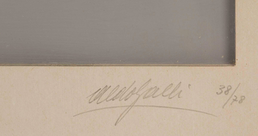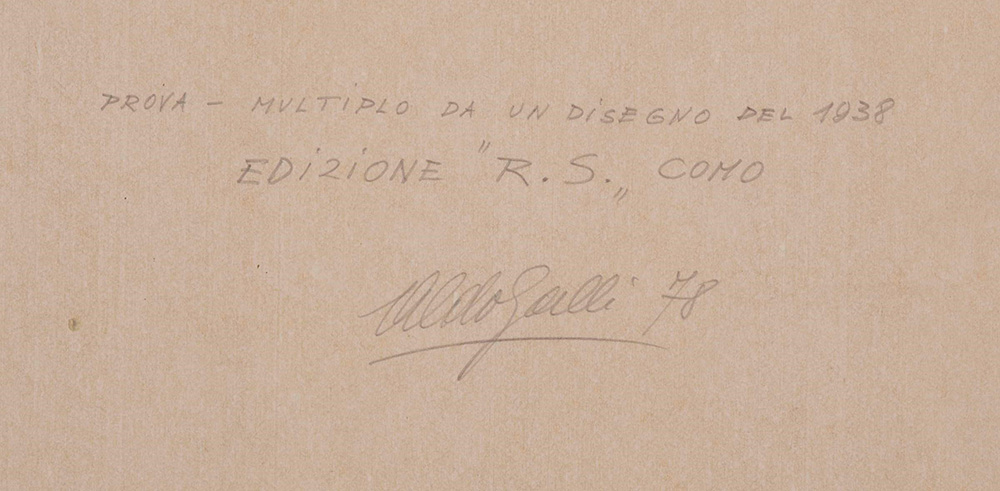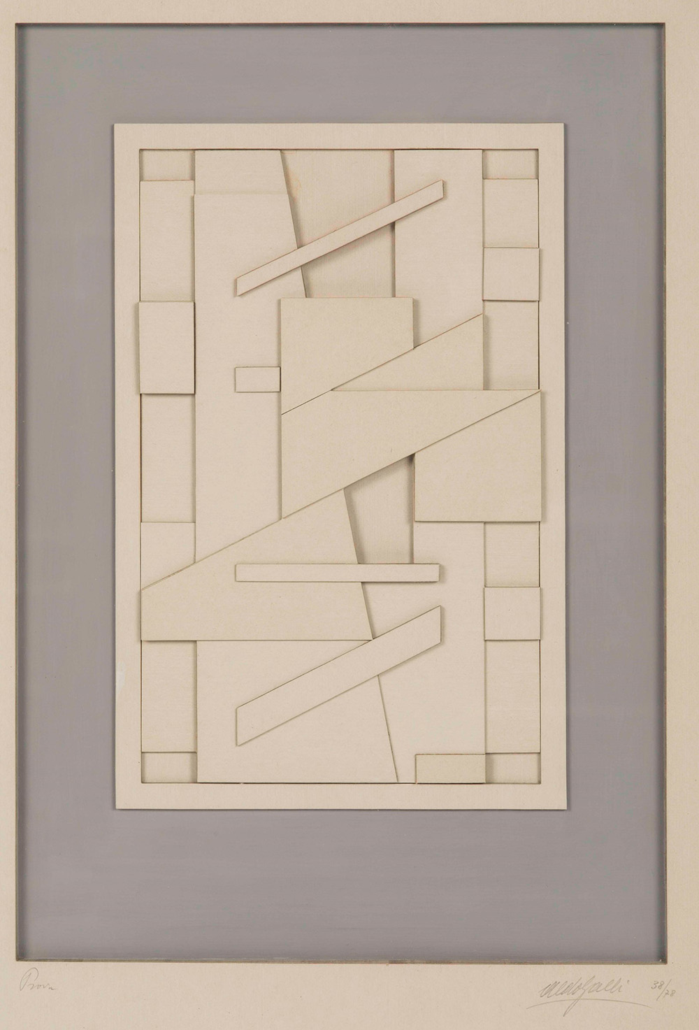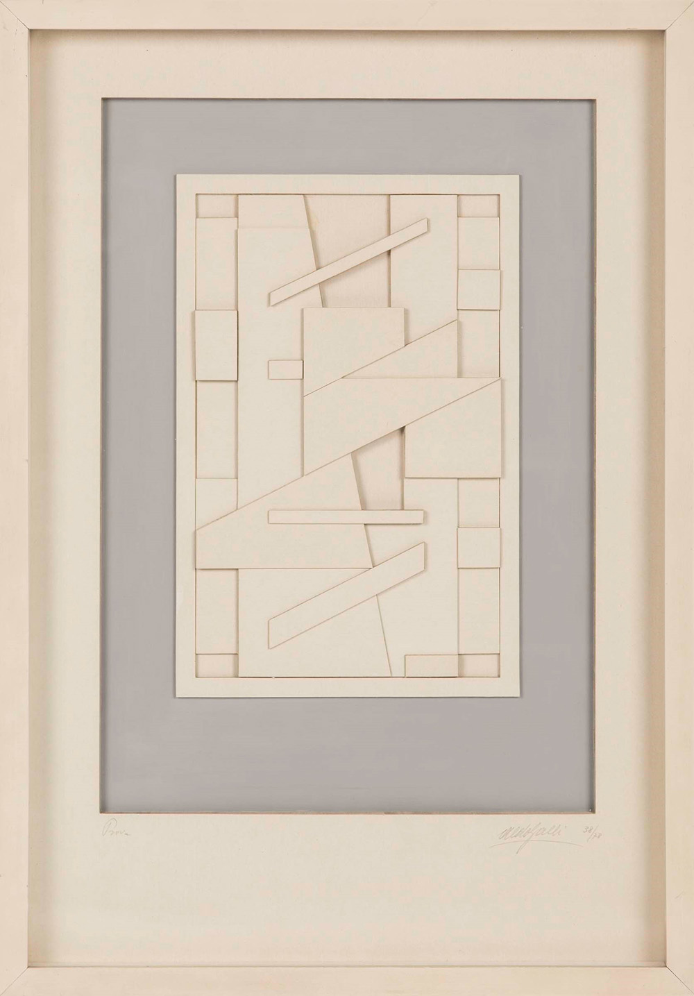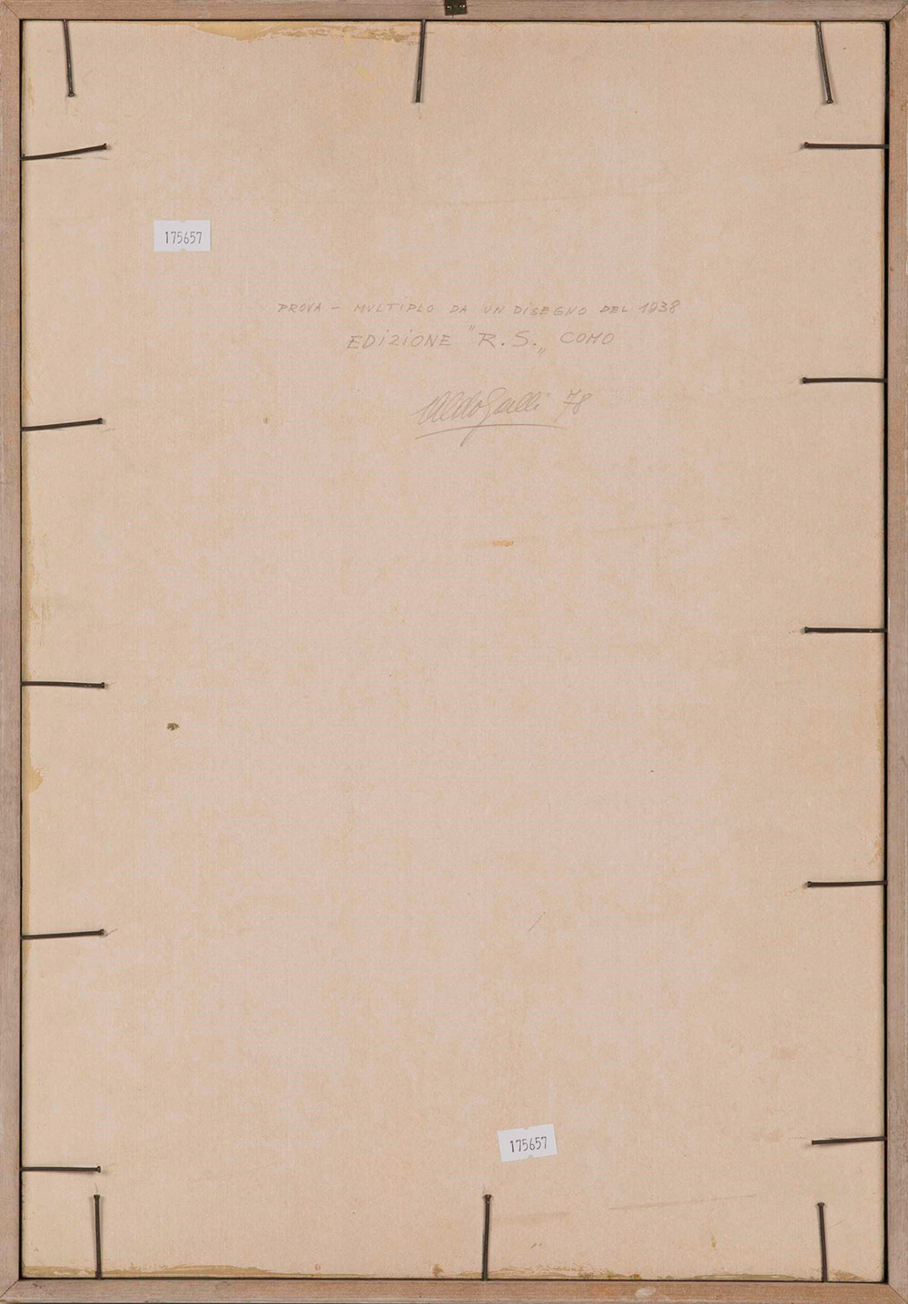 Aldo Galli (1906-1981) Prova, 1978 collage di cartoncino, cm 47x32 firmato in basso a destra firmato e datato al retro es. 38/78 Disegno ripreso da un modello del 1938 edizione R.S., Como l'opera presenta lievi tracce di colla ingiallita in alto e nella parte inferiore Aldo Galli (1906-1981), Prova, 1978 sollage of cardboard, cm 47x32 signed lower right signed and dated on the back es. 38/78