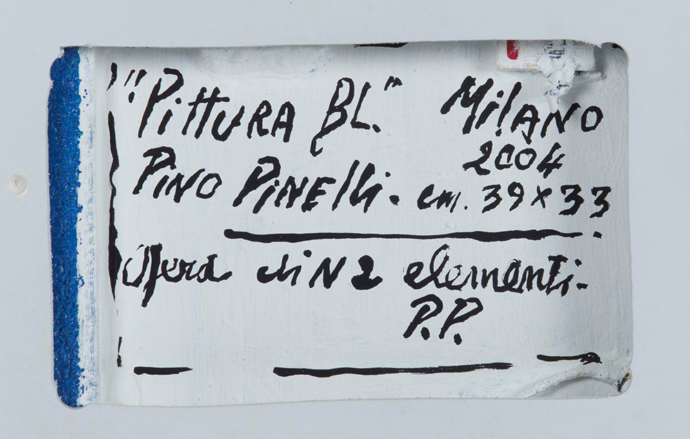 Pino Pinelli (1938) Pittura BL, 2014 opera formata da n. 2 elementi, tecnica mista, cm 33x39 firmato, intitolato e datato al retro Autentica su fotografia dell’artista Opera autenticata al retro dall’artista l'opera si presenta in buono stato conservativo Pino Pineli (1938), Pittura BL, 2014 This work is formed by 2 elements, mixed media, cm 33x39 signed, titled and dated on the back Photo certificate signed by the artist This work is authenticated by the artist on the back