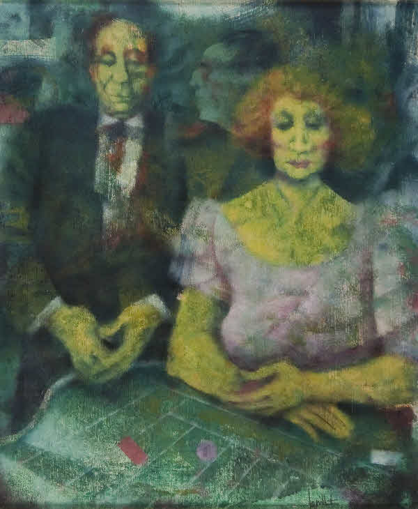 Remo Squillantini - Perplessità - 1987 olio su tavola cm. 60x50. Opera archiviata presso l’Archivio Fotografico Generale delle Opere di Remo Squillantini al n. 106/VII. Opera esposta nella mostra antologica a cura della Galleria d’Arte Russo e Russo, Fiuggi; Opera pubblicata nel cat. “Squillantini” a pag. 65, Ed. Corbelli. Firma in basso a dx