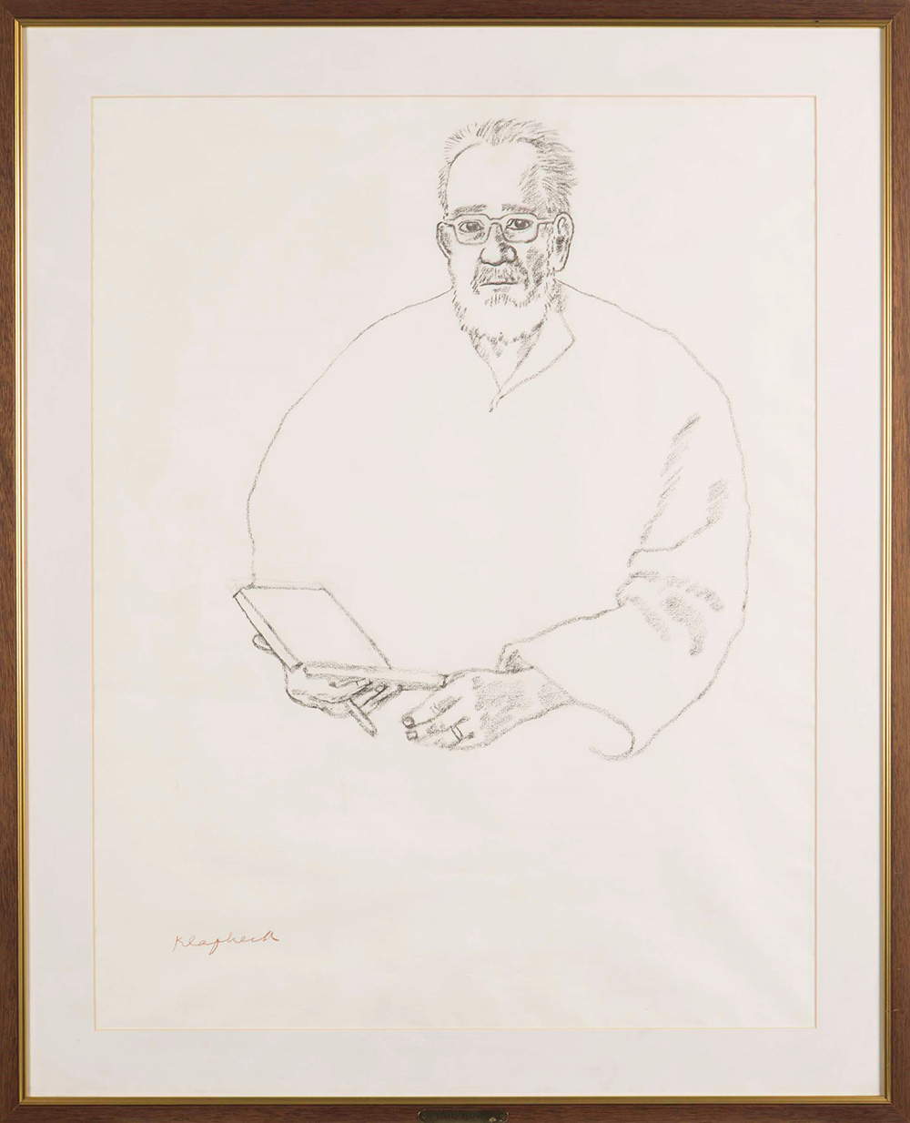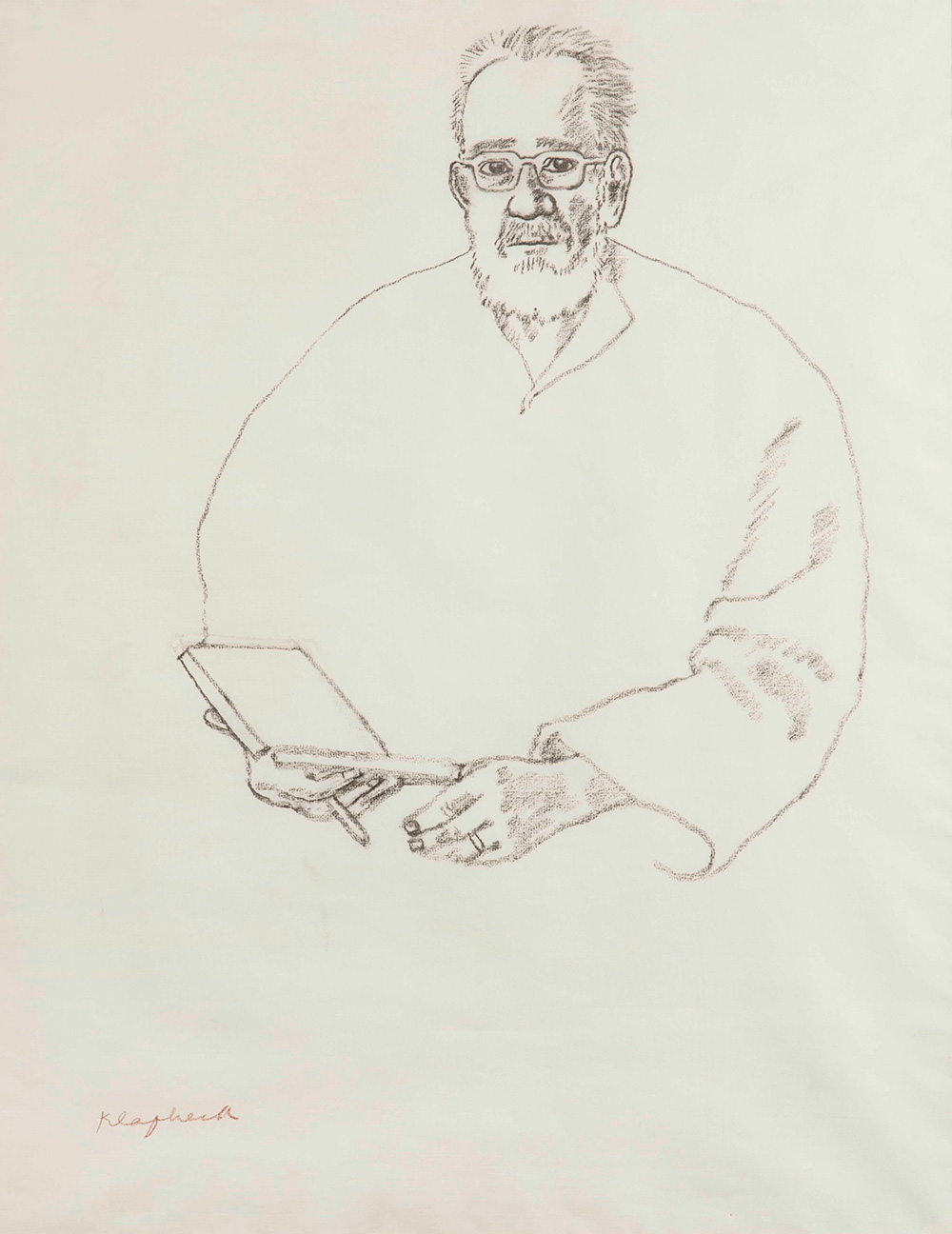 Konrad Klapheck (1935) Ritratto di Arturo Schwarz, 1999 carboncino su carta, cm 65x60 firmato in basso a sinistra l'opera presenta ondulazioni della carta dovute al pass Konrad Klapheck (1935), Ritratto di Arturo Schwarz, 1999 charcoal on paper, cm 65x60 signed lower left