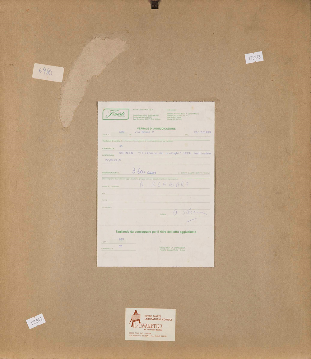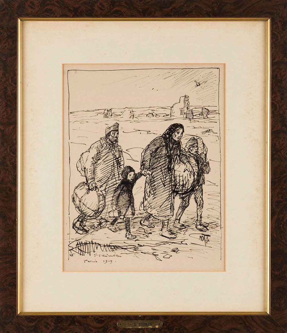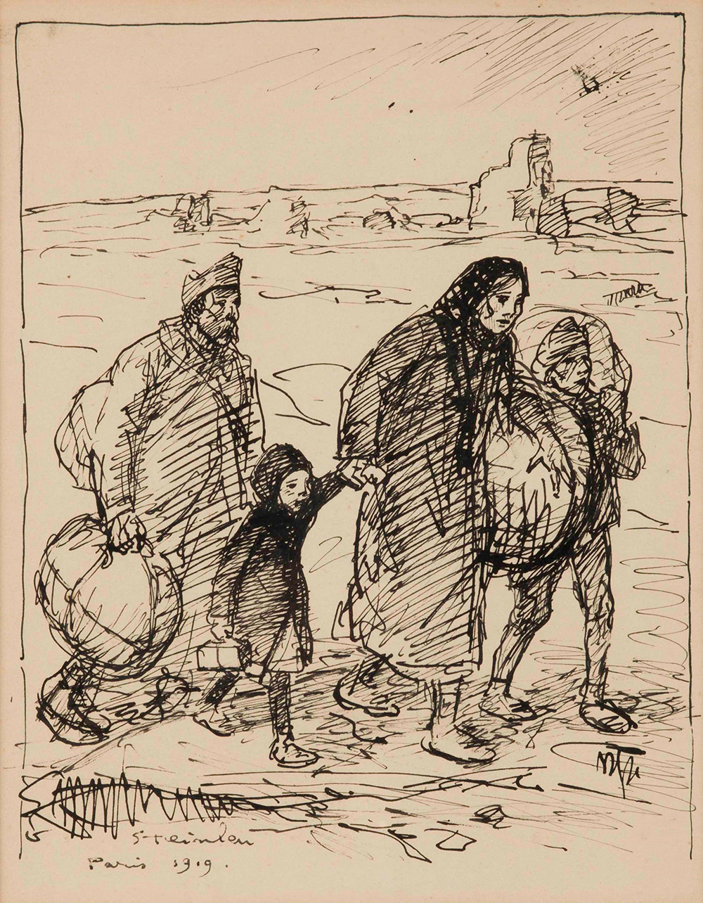 Theophile Alexandre Steinlen (1859-1923) Il ritorno dei profughi, 1919 inchiostro su carta, cm 27,5x21,5 firmato e datato in basso a sinistra Provenienza: Asta Finarte, Milano, 25 maggio 1989, ivi acquistato dall'attuale propritario Theophile Alexandre Steinlen (1859-1923), Il ritorno dei profughi, 1919 ink on paper, cm 27,5x21,5 signed and dated lower left