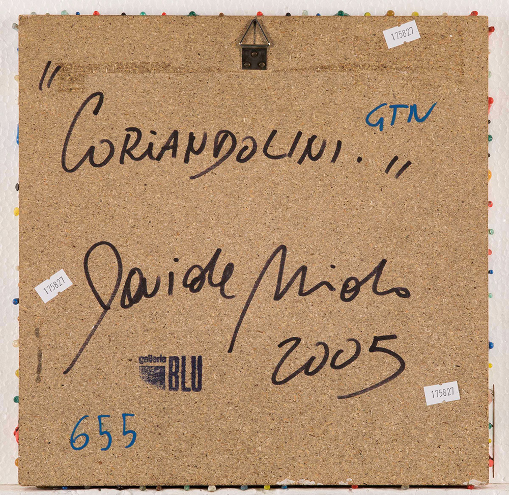 Davide Nido (1966-2014) Coriandolini, 2005 colle su tavola, cm 30x30 firmato, intitolato e datato al retro Timbro al retro della Galleria Blu, Milano Autentica su fotografia dell’artista Provenienza: Collezione Arturo Schwarz, Milano Galleria Blu, Milano Davide Nido (1966-2014), Coriandolini, 2005 glues on board, cm 30x30 Stamp on the back of Galleria Blu, Milano Photo certificate signed by the artist