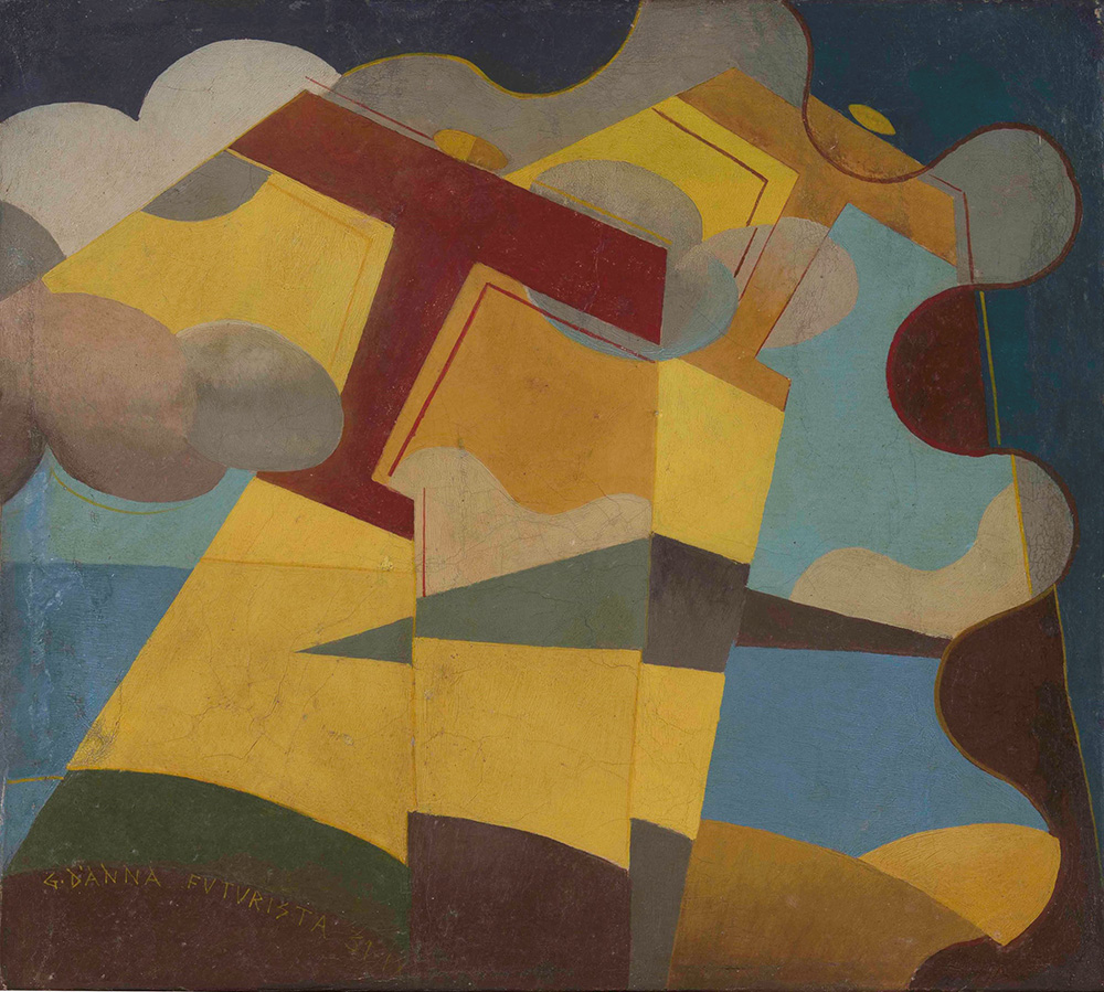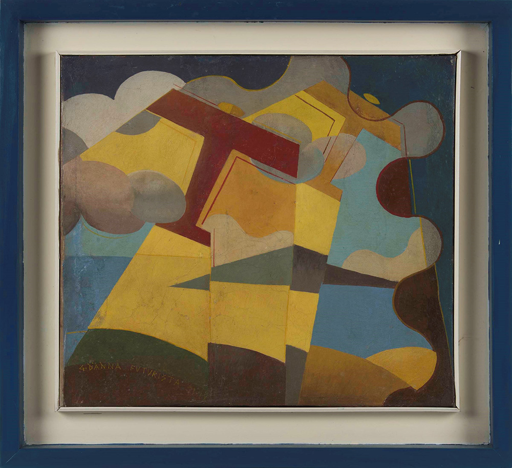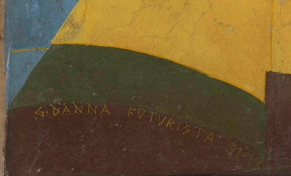 Giulio D'Anna (1908-1978) Aerei caproni+paesaggio, 1931 olio su tela, cm 40x45 firmato e datato in basso a sinistra Autentica su fotografia a cura dell’Archivio Storico Futuristi Siciliani, Palermo Provenienza: Collezione privata, Roma l'opera presenta una patina di sporco sulla superficie, con la lampada di Wood si sono riscontrate riprese di colore di un precedente restauro, l'opera è stata restaurata con una resina sintetica Giulio D'Anna (1908-1978), Aerei caproni+paesaggio, 1931 oil on canvas, cm 40x45 signed and dated lower left Photo certificate by the Archivio Storico Futuristi Siciliani, Palermo