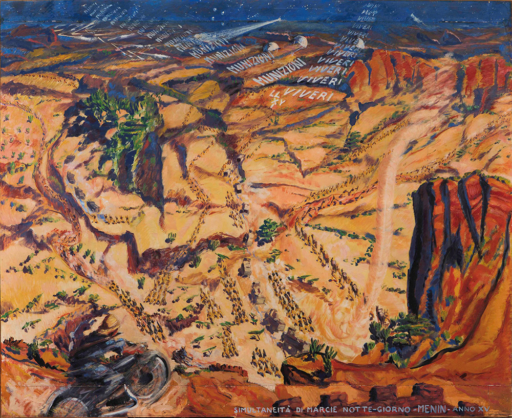 Mario Menin (1896-1961) Simultaneità di marcie di notte-giorno nel Tembien,...