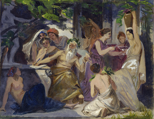 Scipione Vannutelli (Roma, 1834 - 1894) Scena mitologica Olio su carta riportata su cartone, cm. 24x30 Sigla in basso a destra.