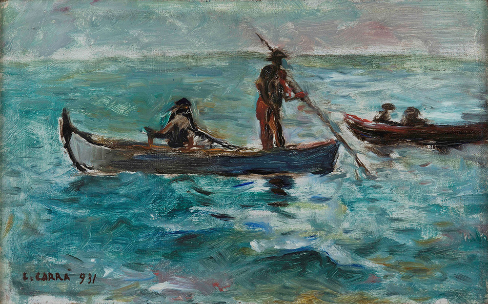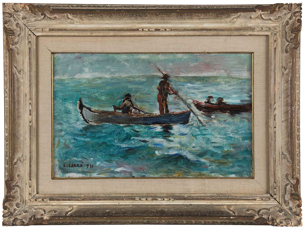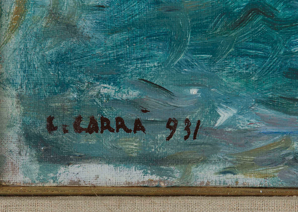 Carlo Carrà (1881-1966) Bozzetto di barche, 1931 olio su tavola, cm 25x40 firmato e datato in basso a sinistra Provenienza: Collezione privata, Impruneta Bibliografia: Catalogo generale a cura della Galleria Annunciata e Conchiglia, col n. 21/31 Carlo Carrà (1881-1966), Bozzetto di barche, 1931 oil on board, cm 25x40 signed and dated lower left
