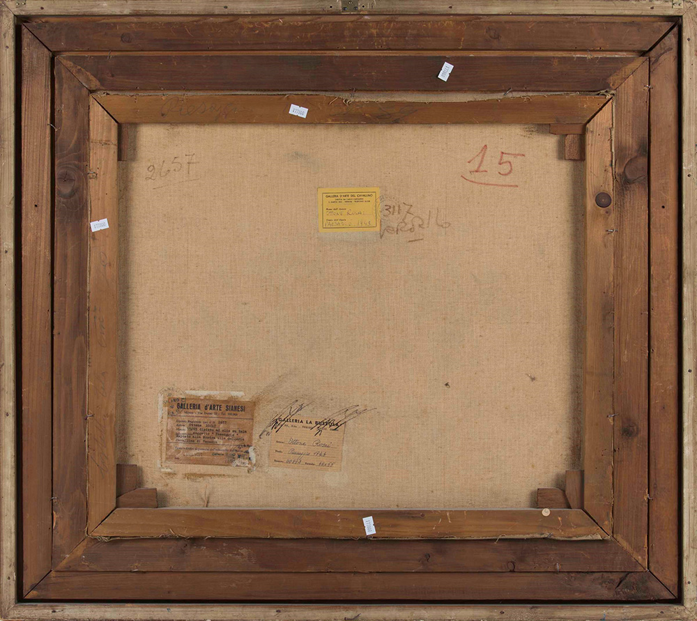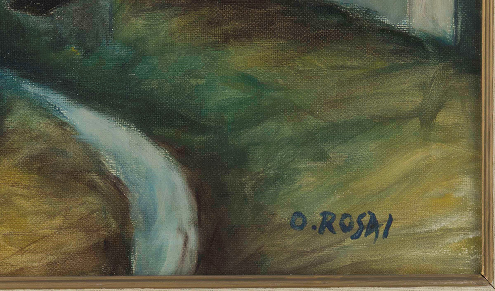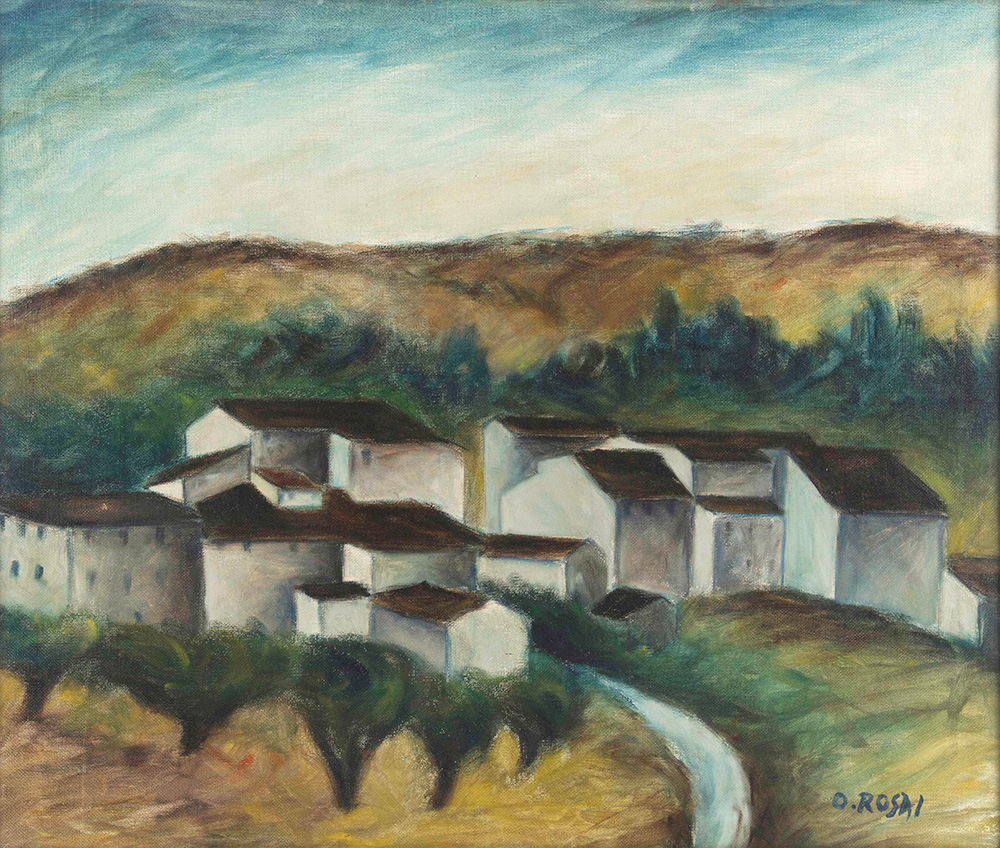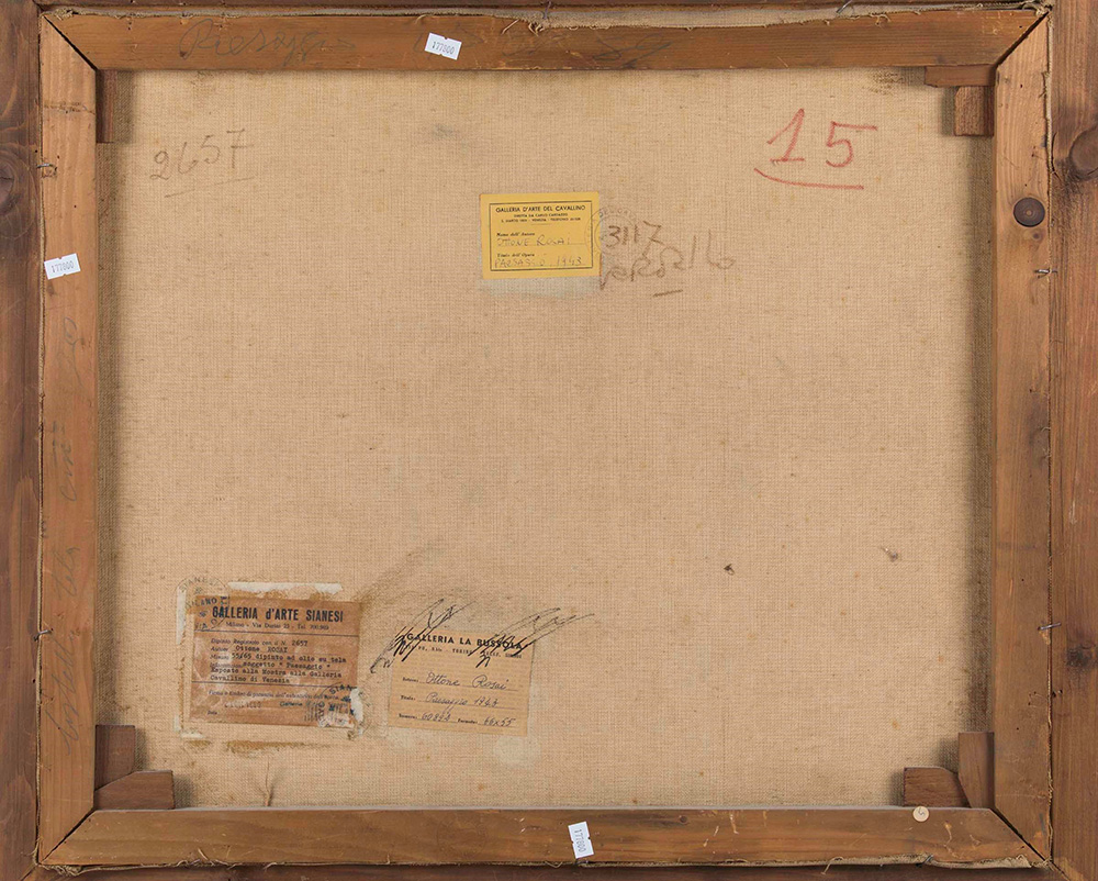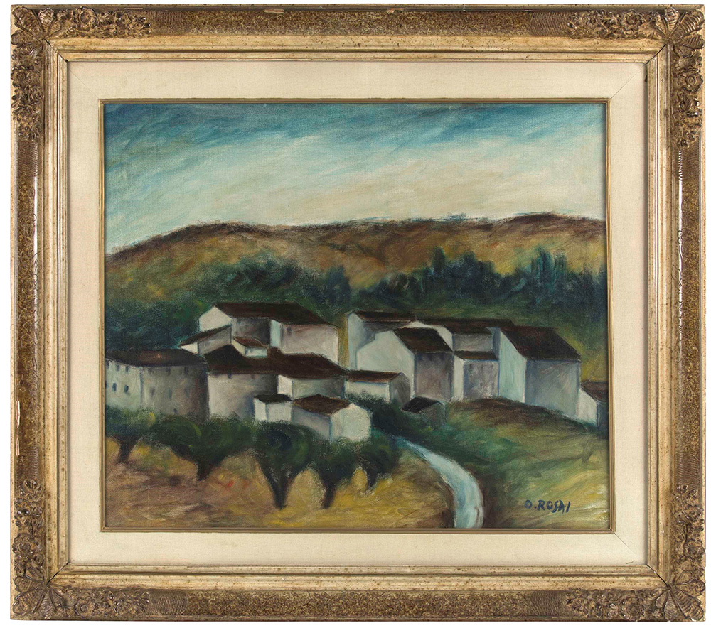 Ottone Rosai (1885 - 1957) Paesaggio, 1943 olio su tela, cm 55,5x65,5 firmato e datato in basso a destra Etichetta al retro della Galleria La Bussola, Torino Etichetta e timbro al retro della Galleria d’Arte del Cavallino, Venezia Etichetta e timbro al retro della Galleria d’Arte Sianesi, Milano Provenienza: Collezione privata, Milano Galleria d’Arte Sianesi, Milano Galleria d’Arte del Cavallino, Venezia Galleria La Bussola, Torino Esposizioni: Mostra alla Galleria d’Arte del Cavallino, Venezia l'opera si presenta in buono stato conservativo Ottone Rosai (1885 - 1957), Paesaggio, 1943 oil on canvas, cm 55,5x65,5 signed and dated lower right Label on the back of the Galleria La Bussola, Torino Label on the back of the Galleria d’Arte del Cavallino, Venezia Label and stamp on the back of the Galleria d’Arte Sianesi, Milano