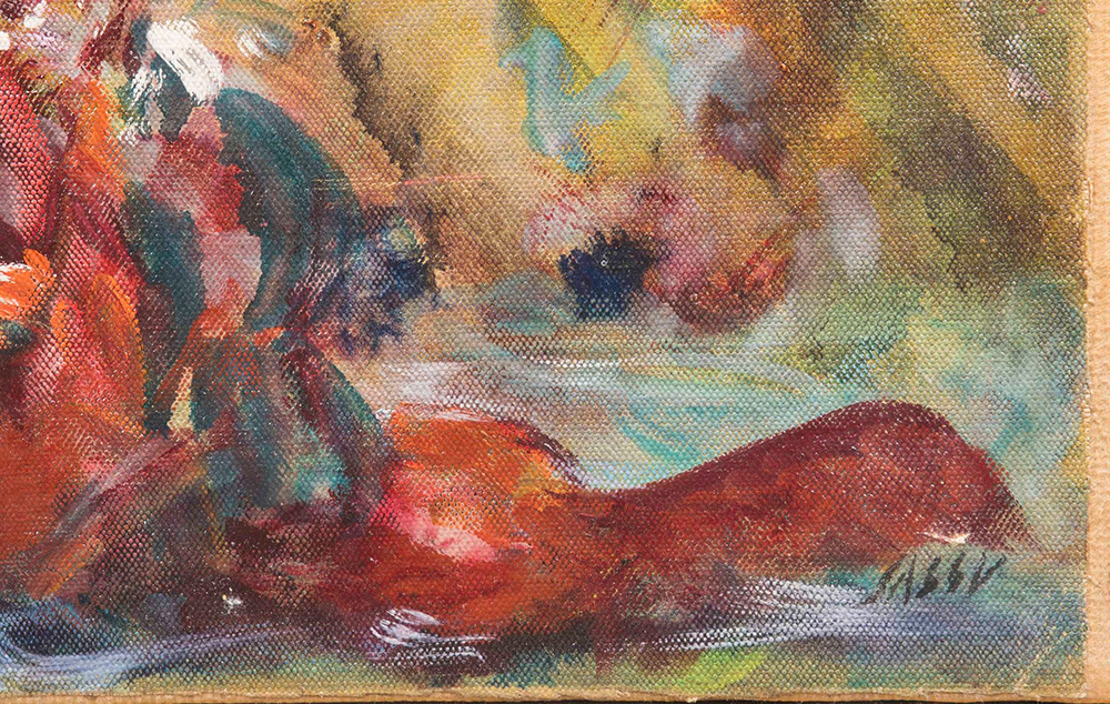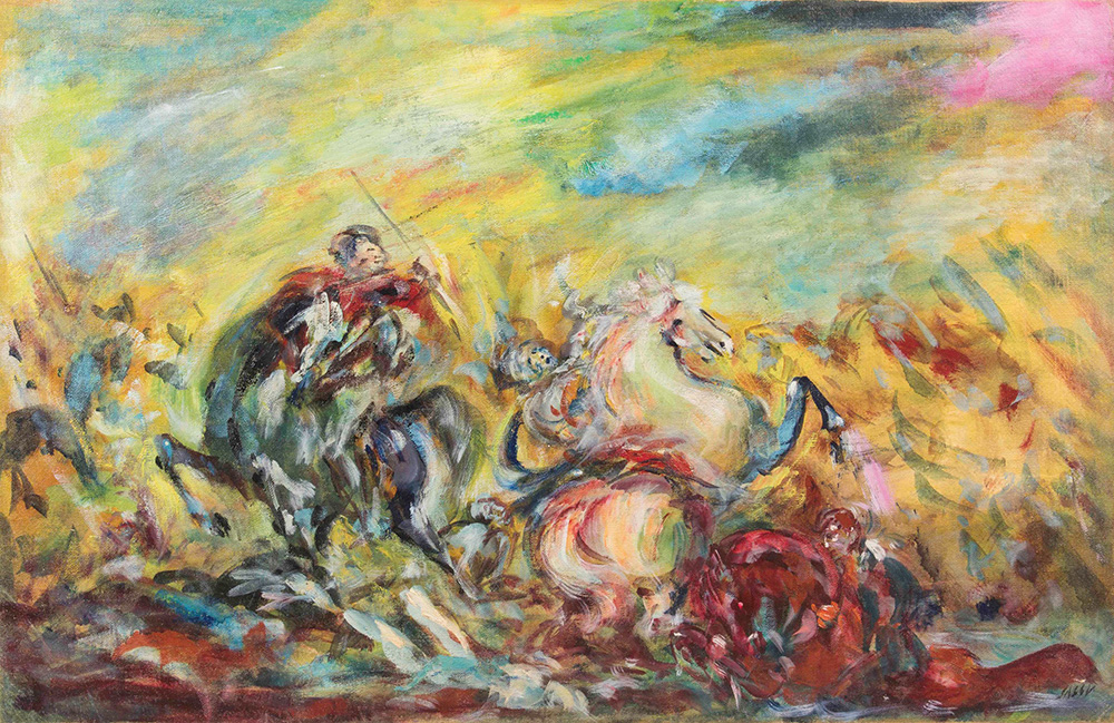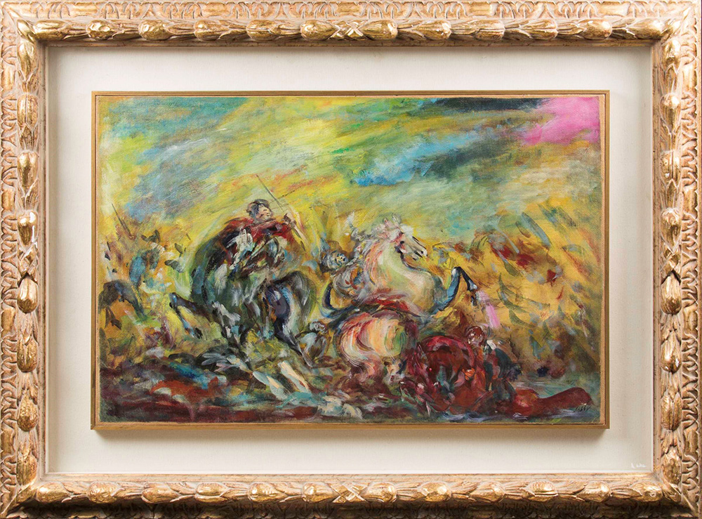 Aligi Sassu (1912-2000) Senza titolo, 1952 olio su tela, cm 48x75 firmato in basso a destra Etichetta al retro della Galleria il Nuovo Sagittario, Milano Provenienza: Galleria il Nuovo Sagittario, Milano, ivi acquistato dall'attuale proprietario l'opera si presenta in buono stato di conservazione Aligi Sassu (1912-2000), Untitled, 1952 oil on canvas, cm 48x75 signed lower right Label on the back of the Galleria il Nuovo Sagittario, Milano
