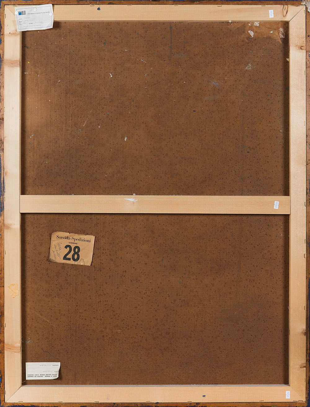 Parmeggiani Tancredi (1927-1964) Senza titolo, 1959 tempera su faesite, cm 115x89 Etichetta al retro della Galleria Blu, Milano Etichetta al retro Palazzo dei Diamanti, Ferrara Provenienza: Collezione Eredi T. Parmeggiani, Oslo Collezione C. Scatturin Galleria Blu, Milano, ivi acquistato dall'attuale proprietario Esposizioni: Tancredi, Galleria Civica d'Arte Moderna, Palazzo dei Diamanti, Ferrara, 1981-1982 Bibliografia: Tancredi, Galleria Civica d'Arte Moderna, Palazzo dei Diamanti, Ferrara, 1981-1982, ripr. a cat. col n. 53, fig. 53 Marisa Dalai Emiliani, Tancredi. I dipinti e gli scritti, Allemandi Editore, 1997, n. 872 in prossimità dell’angolo inferiore sinistro, e superiore destro vi è una sbeccatura e mancanza di colore. piccola mancanza di colore nella parte superiore verso destra (fare foto) Parmeggiani Tancredi (1927-1964), Untitled, 1959 tempera on masonite, cm 115x89 Label of Galleria Blu, Milano on the back Label of Palazzo dei Diamanti, Ferrara on the back
