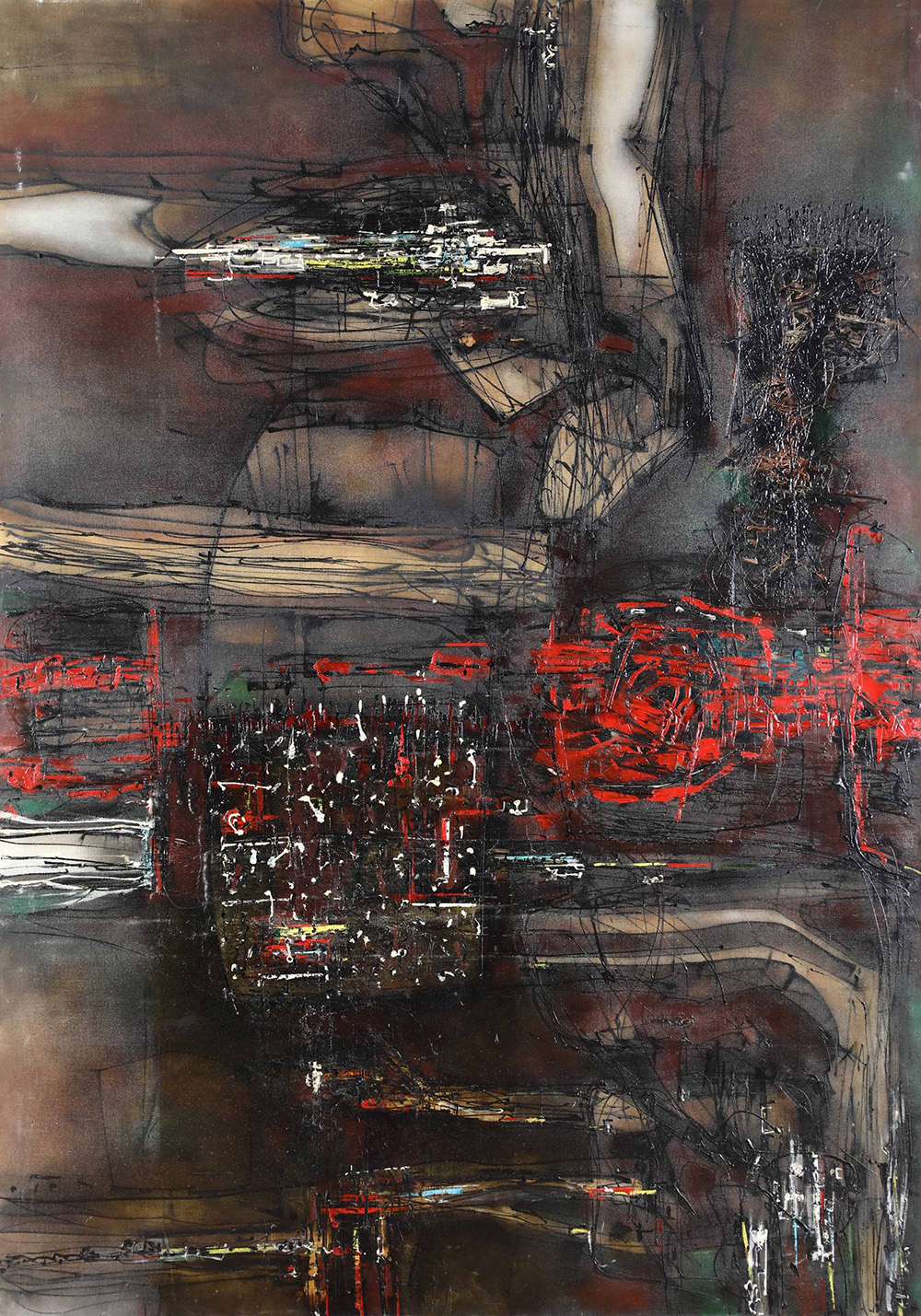 Jerzy Kujawski (1921-1998) Senza titolo acrilico su tela, cm 162x114 firmato al retro Jerzy Kujawski (1921-1998), Untitled acrylic on canvas, cm 162x114 signed on the back