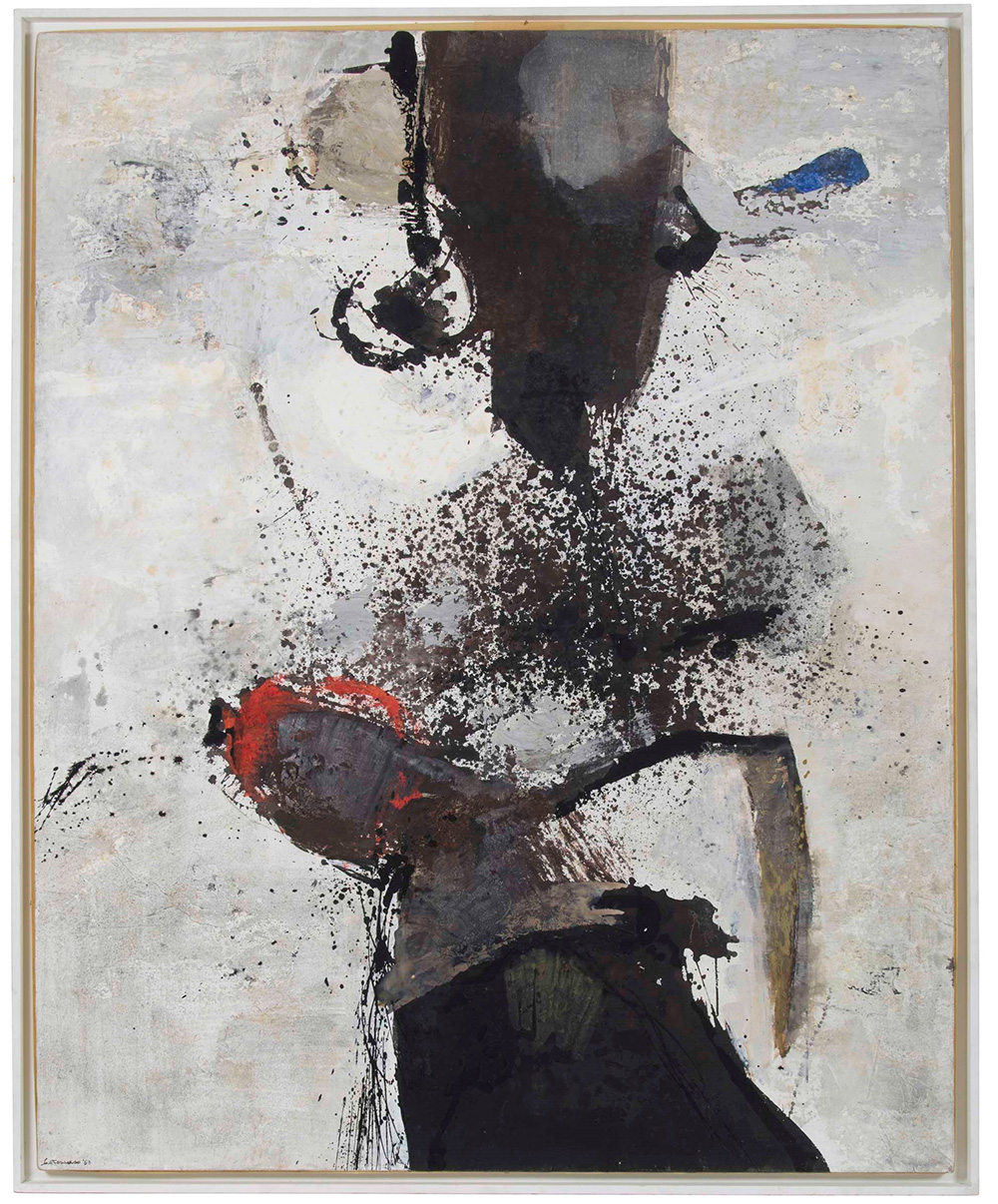 Giuseppe Santomaso (1907-1990) Minaccia, 1963 olio su tela, cm 162x130...