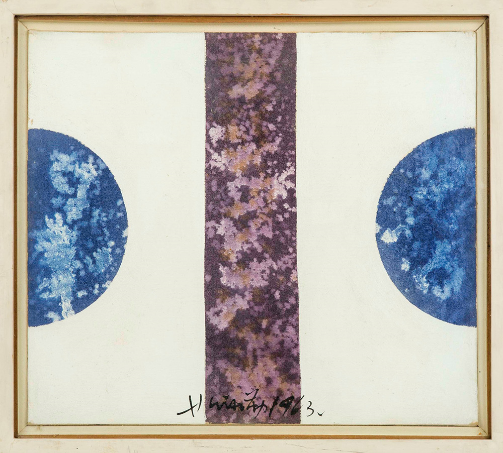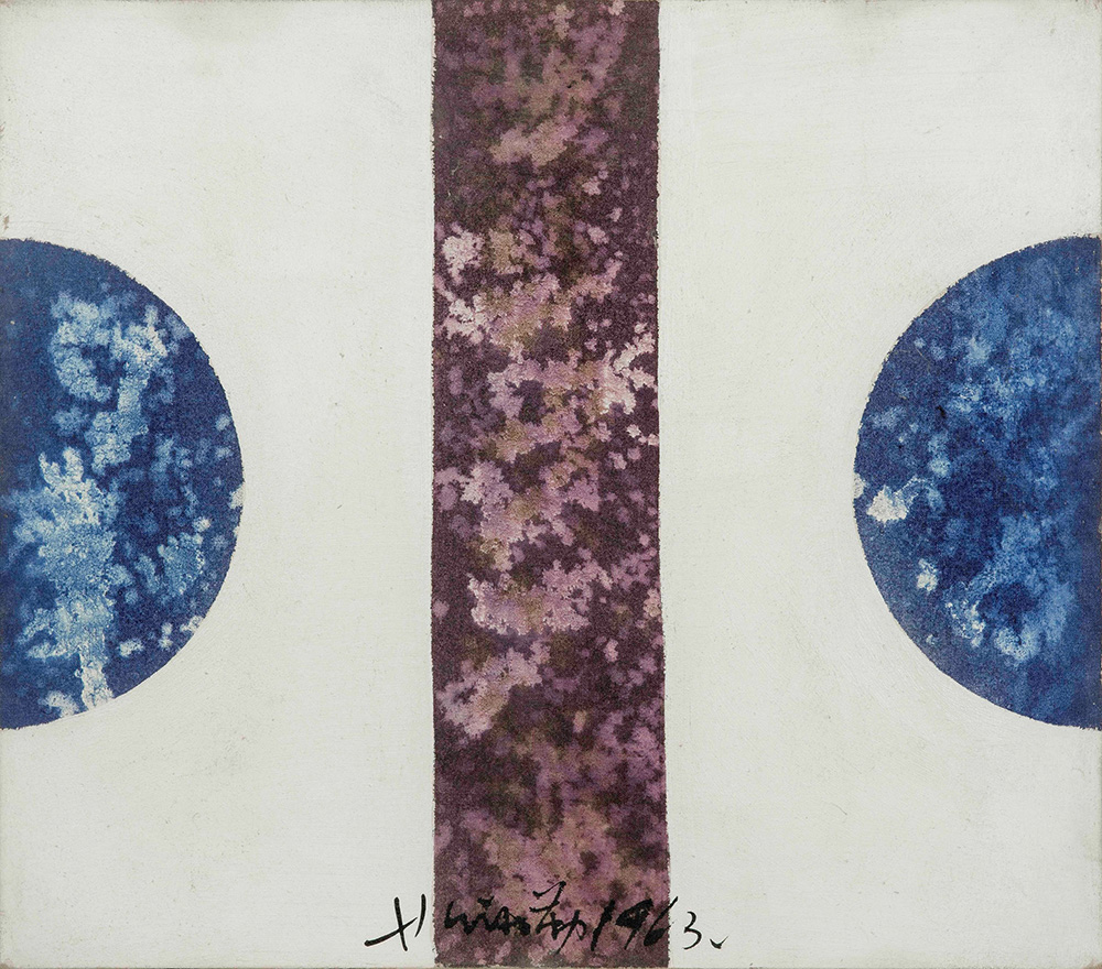 Hsiao Chin (1935) L'equilibrio nella purezza, 1963 olio su tela, cm 35x40...