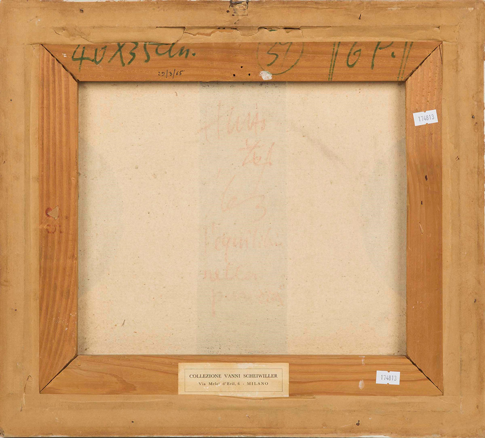 Hsiao Chin (1935) L'equilibrio nella purezza, 1963 olio su tela, cm 35x40 firmato e datato in basso al centro firmato datato e intitolato al retro Provenienza: Collezione privata, Milano l’opera presenta una leggera patina di sporco, facilmente rimovibile e leggere abrasioni del colore in corrispondenza del bordo di sinistra e dei 4 angoli Hsiao Chin (1935), L'equilibrio nella purezza, 1963 oil on canvas, cm 35x40 signed and dated lower side signed and dated on the back