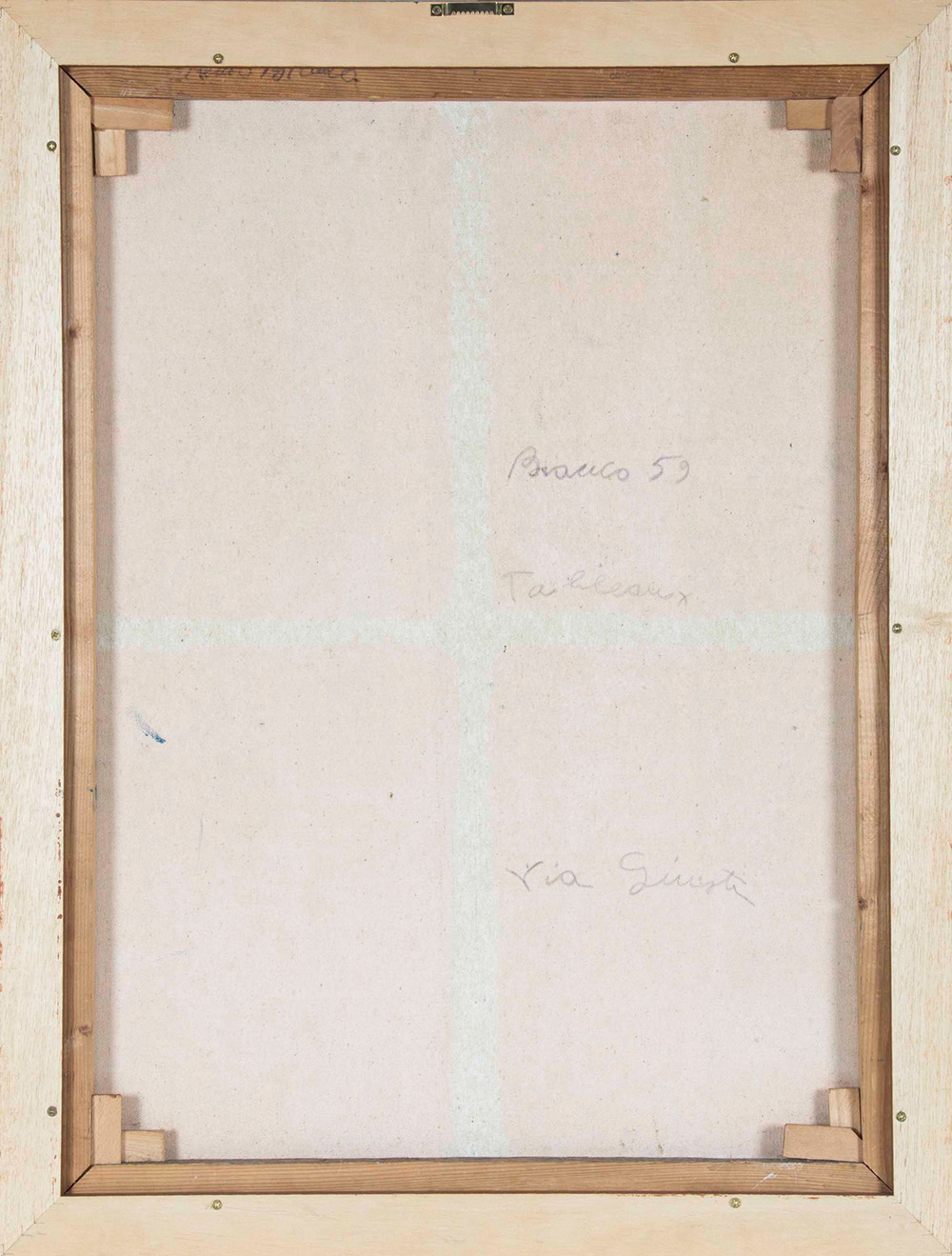 Remo Bianco (1922-1988) Tableaux, 1959 olio su tela con foglia oro, cm 80x60 firmato, intitolato e datato al retro Opera in fase di registrazione presso la Fondazione Remo Bianco, Milano allentamento della tela nell’angolo superiore sinistro, polvere, piccolissime mancanze di colore in corrispondenza del bordo superiore e lungo il bordo inferiore sinistro, in buono stato conservativo Remo Bianco (1922-1988), Tableaux, 1959 Oil on canvas Cm 80 x 60 Signed and dated on back
