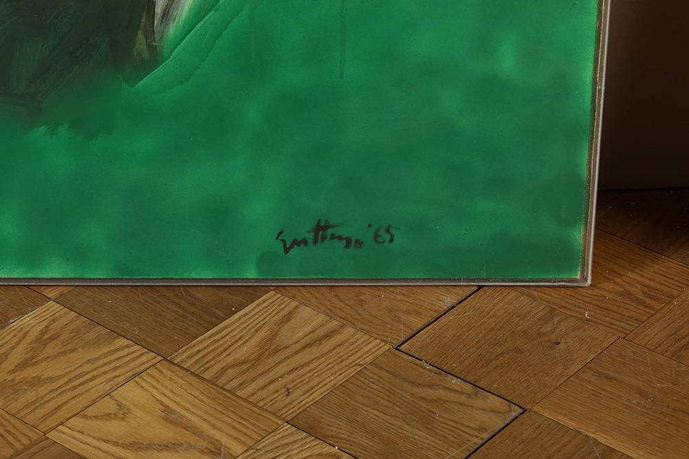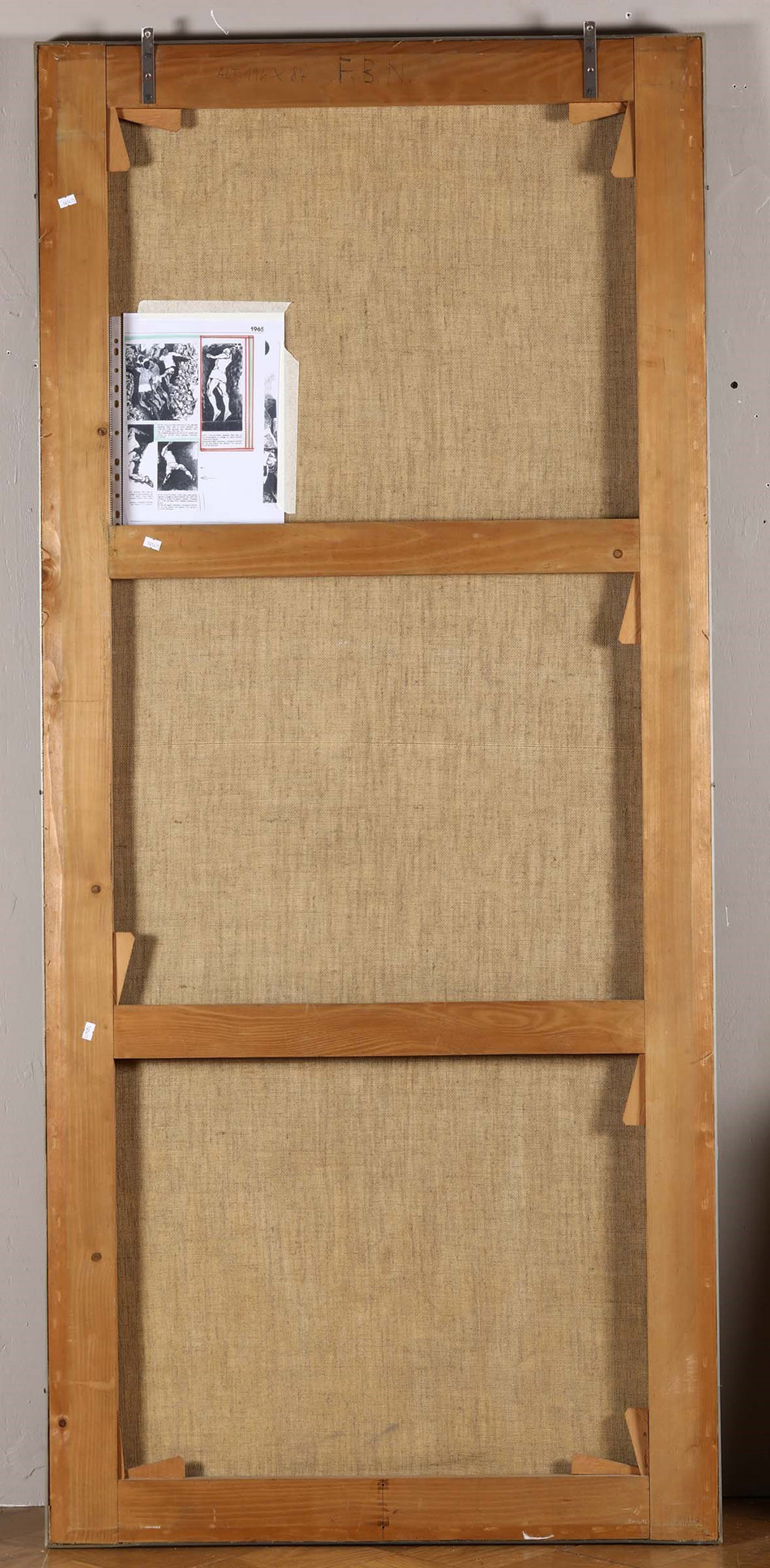 Renato Guttuso (1911-1987) Calciatore, 1965 olio, nitro all'aerografo e collage su carta intelata, cm 194x86,5 firmato e datato in basso a destra Opera registrata presso l'Archivio Renato Guttuso, Roma, con il n. 1815412389 Bibliografia: Catalogo Ragionato generale dei dipinti di Renato Guttuso, a cura di Enrico Crispolti, Mondadori, Milano, 1984, pubblicato con il n. 65/31 l'opera si presenta in buono stato conservativo Renato Guttuso (1911-1987), Calciatore, 1965 Oil and collage on paper Cm 194 x 86,5 Work registered at l'Archivio Renato Guttuso, Roma Signed and dated lower right