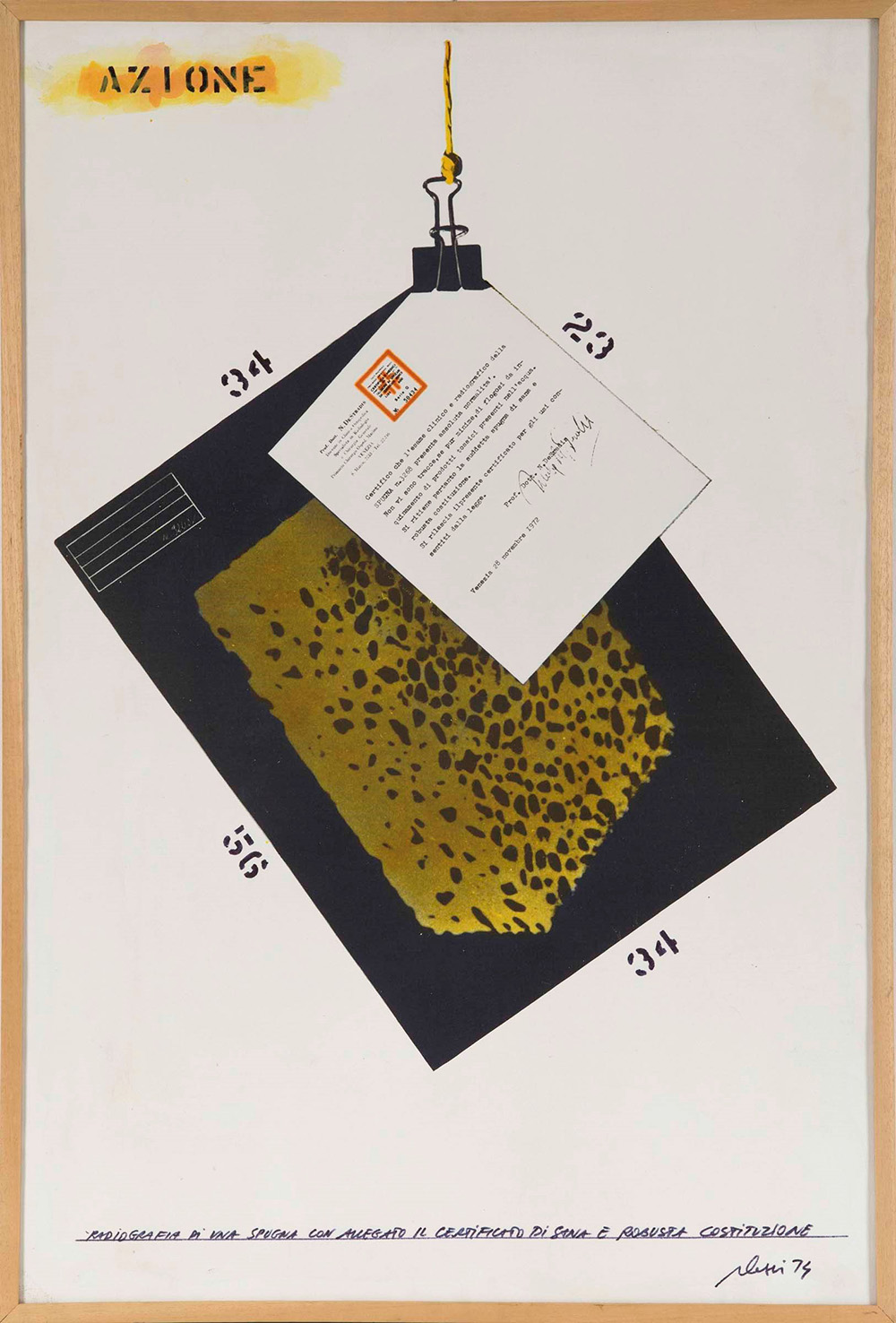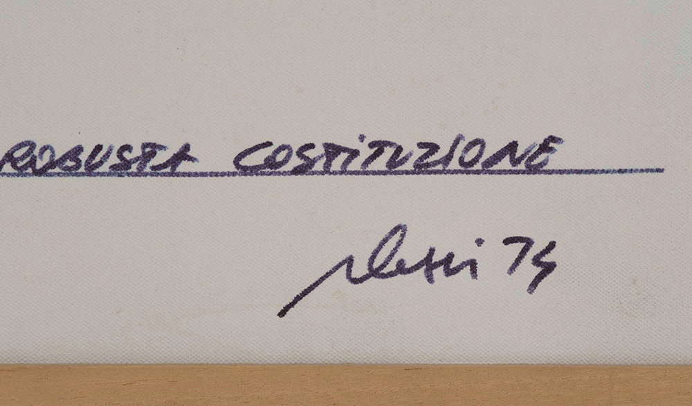 Fabrizio Plessi (1940) Azione, 1974 acrilico su tela, cm 92,5x61,5 firmato e datato in basso a destra intitolato al fronte l’opera presenta una leggera patina di sporco, facilmente rimovibile, inoltre vi è un’ondulazione della tela sui bordi di sinistra e destra Fabrizio Plessi (1940), Azione, 1974 Acrylic on Canvas cm 92,5x61,5 Signature on bottom right