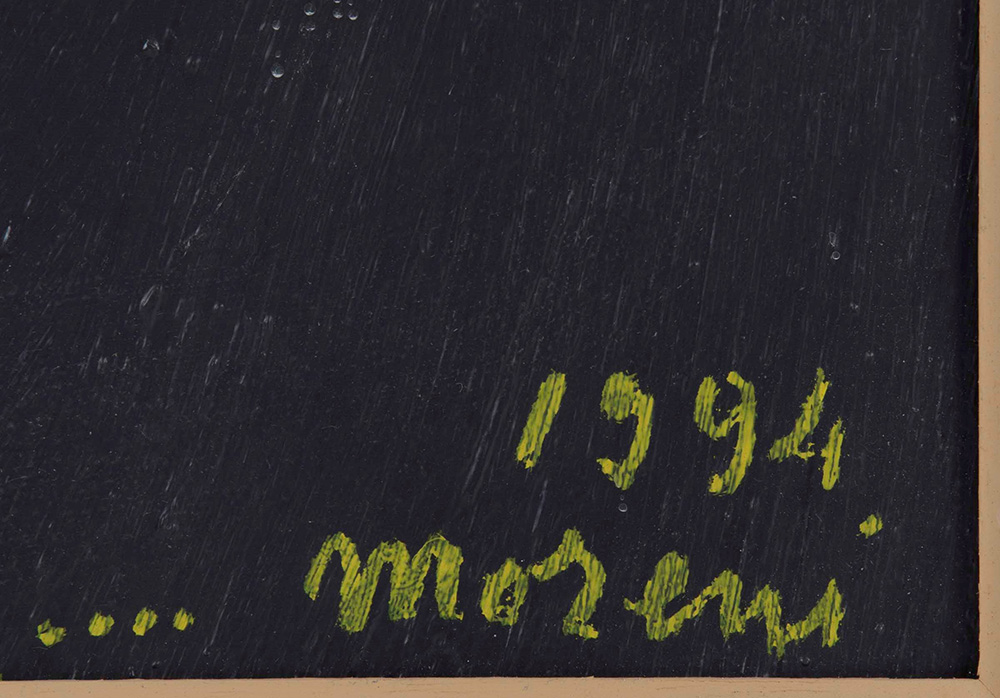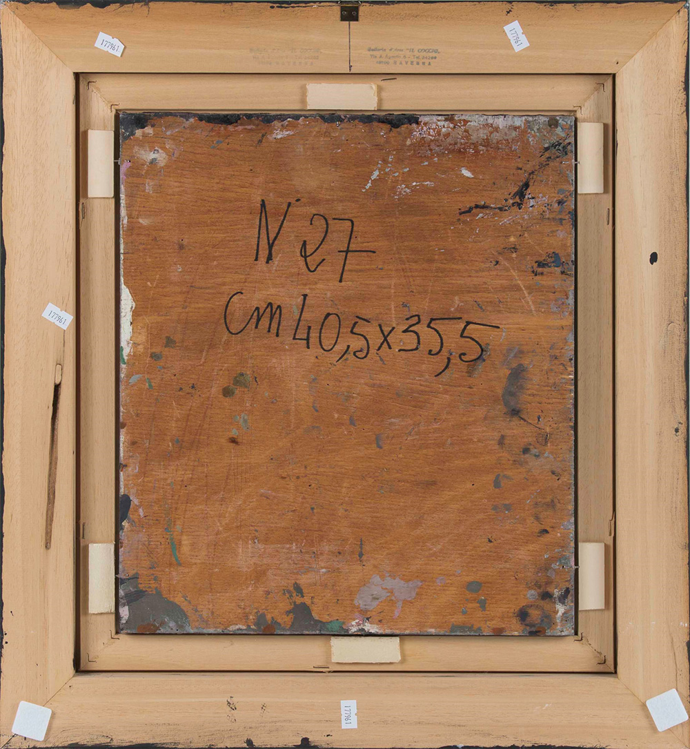Mattia Moreni (1920-1999) "Marilù muore, ciao...Perchè?" n. 27, 1994 tecnica mista su tavola, cm 40,5x35,5 intitolato in alto, firmato e datato in basso a destra Opera registrata presso l'Archivio Mattia Moreni, Bologna, con il n. 94/059 D.R 17 C l'opera presenta una leggera patina di sporco, buono stato conservativo Mattia Moreni (1920-1999), "Marilù muore, ciao...Perchè?" n. 27, 1994 Mixed technique on Board Cm 40,5 x 35,5 Signature on bottom right Work registered at l'Archivio Mattia Moreni, Bologna, con il n. 94/059 D.R 17 C