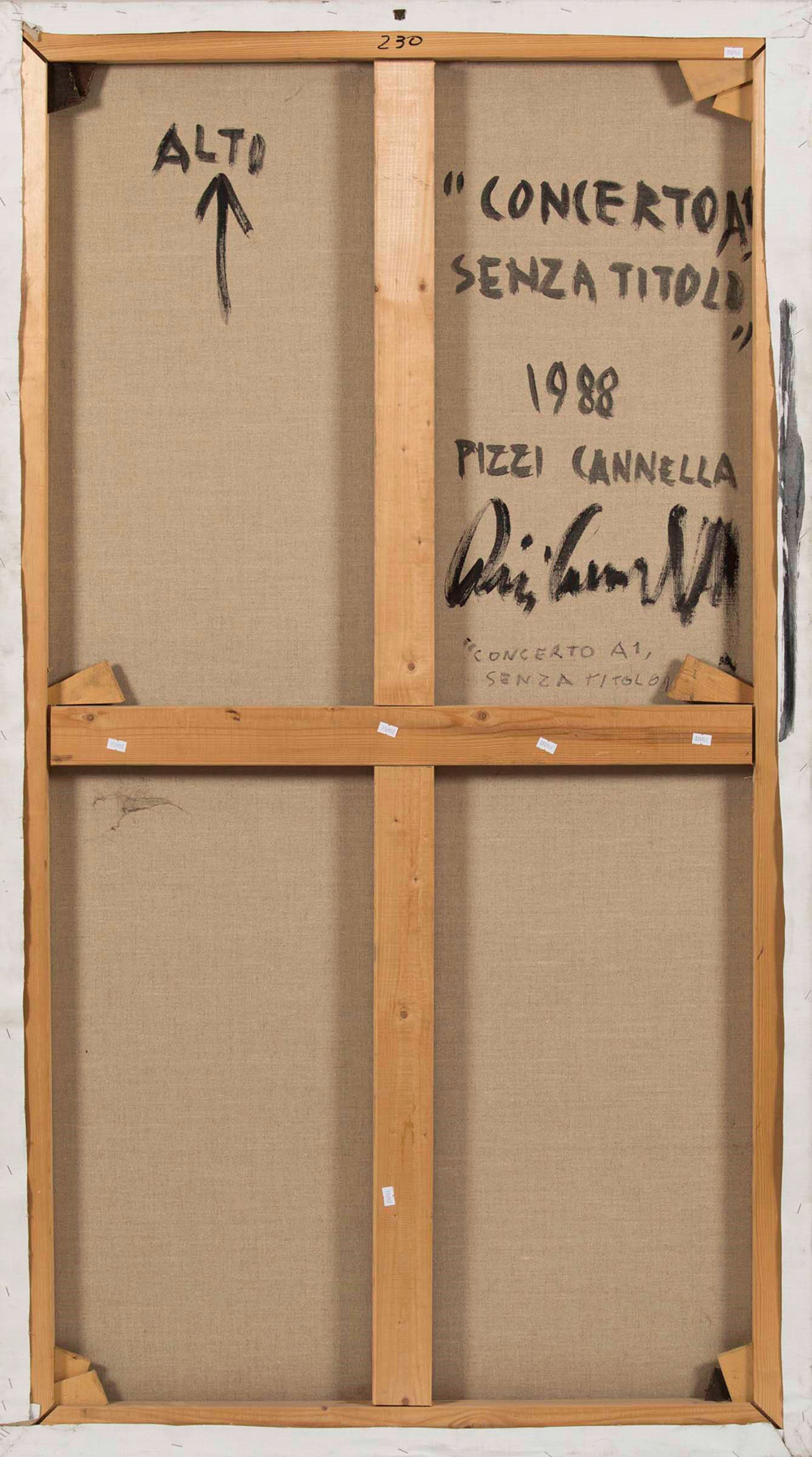 Piero Pizzi Cannella (1955) Concerto A1 Senza titolo, 1988 olio su tela, cm 170x96 firmato, intitolato e datato al retro Opera registrata presso l’Archivio Generale dell’opera di Pizzi Cannella, Roma, con il n. 31/17 Provenienza: Collezione privata, Roma, acquistato direttamente dall’artista Piero Pizzi Cannella (1955), Concerto A1 senza titolo 1988 Oil on canvas on cardboard Cm 170 x 96 Signature on the back