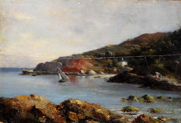 Ercole Calvi (Verona, 1824 - 1900) Marina Olio su tavola, cm. 19,5x28