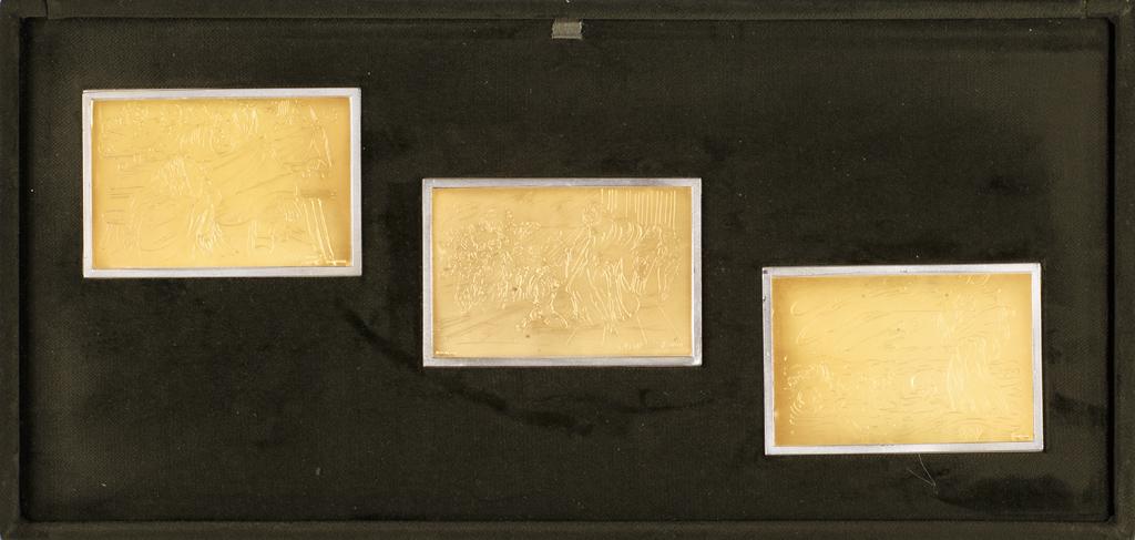 Cofanetto contenente 3 placche in oro 24 carati di Aligi Sassu