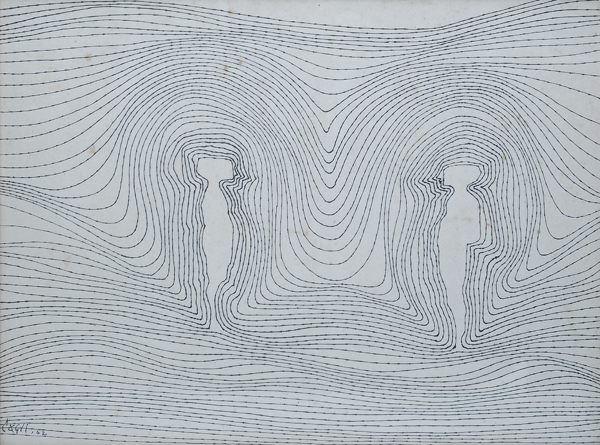 Corrado Cagli (Ancona, 1910 - Roma, 1976) Incontro, 1962 Inchiostro su carta, cm. 52x68 Firma e data in basso a sinistra. Autentica dell'autore su foto.