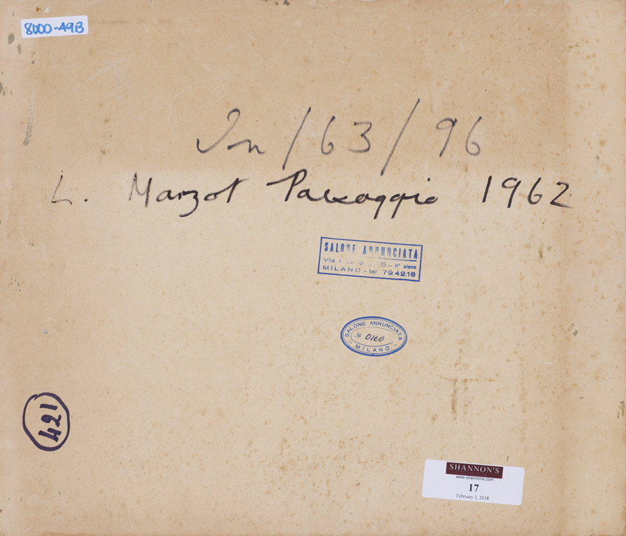 LIVIO MARZOT (1934)Paesaggio, 1962Olio su cartonecm 36x42Firma e datazione al...