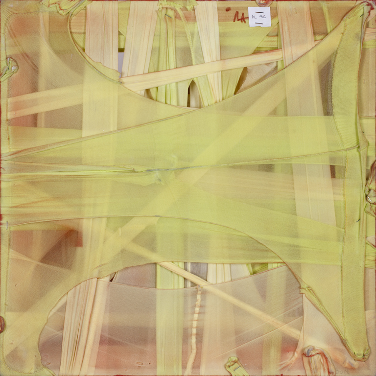 Tecnica mista e calze su telaio in legno