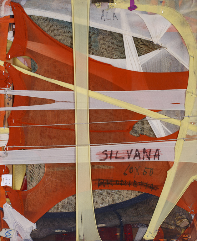 ALA (1966)Nebbia, 2010Tecnica mista e calze su telaio in legnocm 61x51Firma...