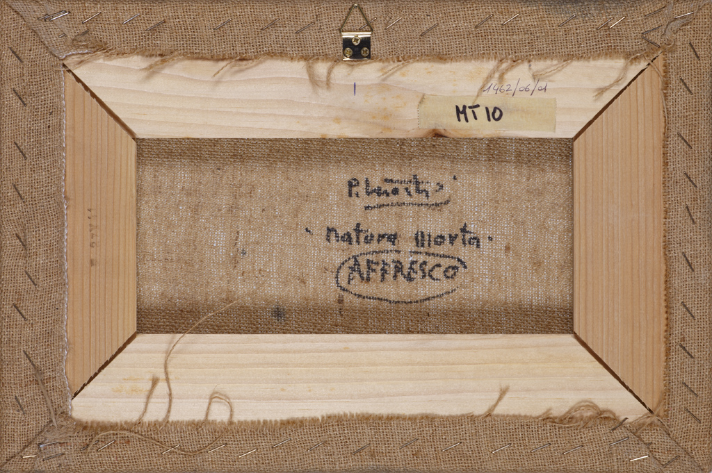 Lotto 257 | PIERO MOSTI (1941)Natura MortaAffresco su telacm 27x41x2,5Firma al...
