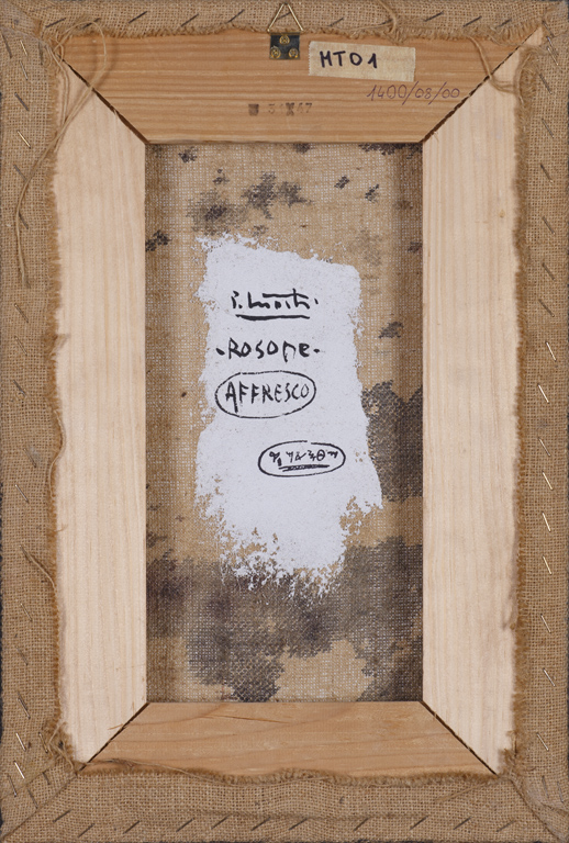 PIERO MOSTI (1941)RosoneAffresco su telacm 47x31x2,5Firma al fronteFirma,...