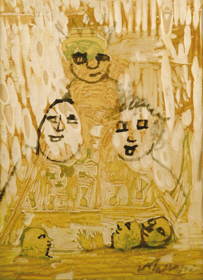 Mino Maccari (Siena, 1898 - Roma, 1989) Figure Matrice xilografica, cm 54,5x39,5 Firma in basso a destra. Autentica dell'autore su foto.