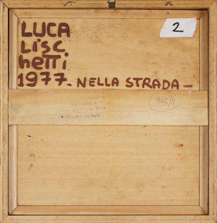 LUCA LISCHETTI (1950)Nella strada, 1977Tecnica mista e applicazioni su tavola...