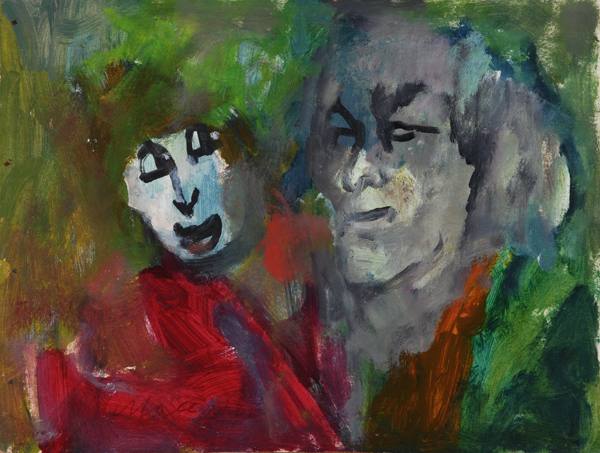 Mino Maccari (Siena, 1898 - Roma, 1989) Due volti Olio su cartoncino riportato su tela, cm. 30x40 Firma in basso a sinistra.