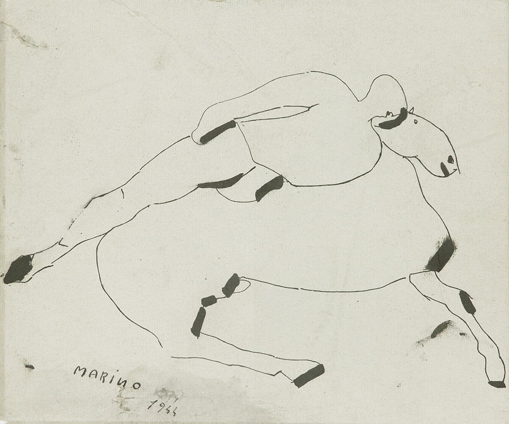 Marino Marini (Pistoia 1901 – Viareggio 1980) Cavallo e cavaliere, 1944;China su carta applicata su cartone, 26,2 x 31,3 cm