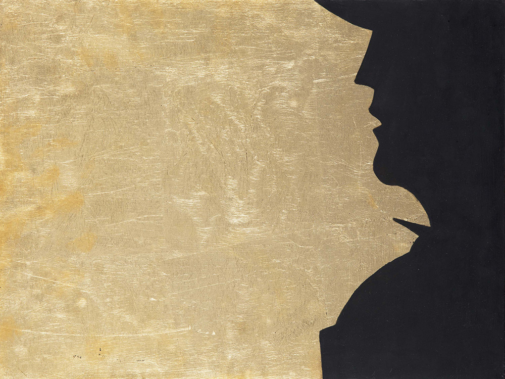Gino De Dominicis Autoritratto, anni ’90;Foglia oro su tavola, 39,4 x 29,6...
