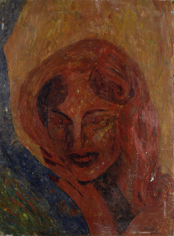 Gianni Dova (Roma, 1925 - Pisa, 1991) Fiamma, (Anni '40-'50) Olio su cartone, cm. 40x30 Firma in basso a destra (cadute di colore). Dipinto sul verso con paesaggio e firma; tracce di etichette.